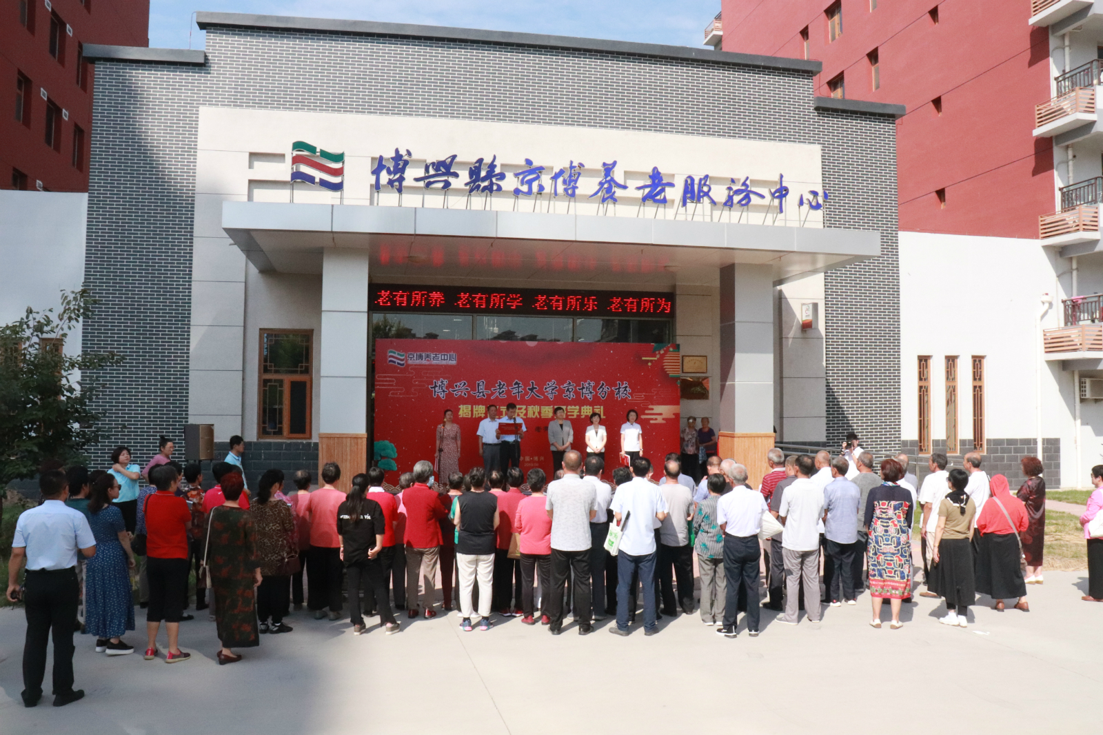 2019年9月4日,滨州博兴县老年大学在京博养老服务中心举行老年大学京博分校揭牌仪式暨2019年秋季开学典礼。滨州市委老干部局副局长、老年大学校长史惠芳,县委组织部副部长、老干部局局长高怀青,县老年大学校长朱丽芳及京博控股集团党委副书记、工会主席高英江,山东省乐安慈孝公益基金会秘书长刘爱蓉,县老年大学及京博分校学员代表参加。此次典礼由博兴县京博养老服务中心总经理、乐安慈孝医院院长郝春艳主持。 揭牌仪式上,高怀青、刘爱蓉分别致辞;史惠芳、高英江共同为博兴县老年大学京博分校揭牌。揭牌仪式暨开学典礼结束后,领导们实地参观了老年大学京博分校,并对下一步更好的做好京博分校工作进行了座谈。 博兴县老年大学京博分校的成立,是坚持开放、融合工作理念,推进老年教育社会化的一次有力探索,是老年大学服务社会、服务老年人的创新举措。县老年大学将在师资、教学管理等方面,为京博分校提供更优质的服务,使京博分校成为我县基层老年教育的一张靓丽名片。 |