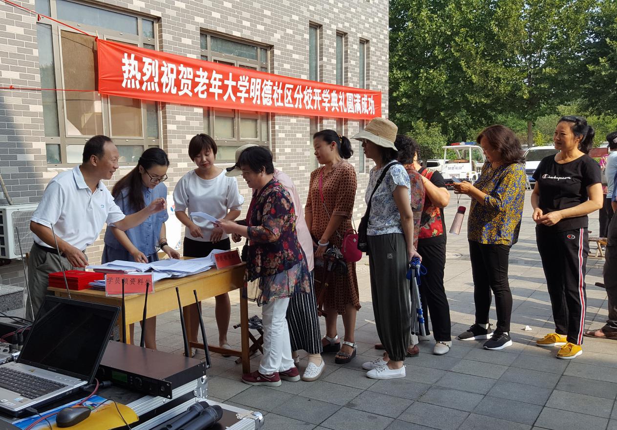 9月7日上午,在济宁曲阜市小雪街道明德社区,报名老年大学明德社区分校的学员们早早地来到如意小区物业楼前,排队领取新学员资料,她们脸上洋溢出期待和兴奋之情。 九时三十分,曲阜市老年大学明德社区分校成立暨首期开班仪式正式开始。曲阜市委常委、组织部部长孙希忠,市委老干部局、小雪街道、市老年大学、明德社区负责人、分校首期师生约120人参加仪式。仪式上,市委常委、组织部长孙希忠向老年大学明德社区分校的成立表示热烈祝贺,对社区老年大学分校的做法表示了肯定,并对今后的办学提出了要求。 他要求,一要开好头,起好步。把分校试点扎实办起来,进而积累经验。市委老干部局、市老年大学要把师资力量保障好,立足实际规划实施好教学计划;小雪街道党工委和明德社区党委要把后勤和安全保障做到位,通过广大学员的学有所获,验证办学成效,为社区老干部、老年人交出一份满意答卷。二要探索社区党建工作新方式、新途径。引导学员中的党员积极参加社区有关活动,探索通过形式多样的文化、体育等活动,让党员学员发挥更大的作用,找到更多的归属感。三要完善老年大学分校标准体系建设。加强现代化手段的运用,重视利用远程教育教学资源,让社区老年人享受高质量的课程服务。要注重围绕中心工作、彰显曲阜特色,开办传统文化、文明实践宣讲等系列课程,在吸引老年人的同时,服务好全市大局。 随后,孙希忠部长和学员代表共同为市老年大学明德社区分校揭牌。揭牌仪式后,全体人员共同欣赏了学校艺术团、腰鼓队和柔力球队的专业节目展示,精彩的节目赢得了在场观众的阵阵掌声,展现了市老年大学多年的教学成果和曲阜市老年人蓬勃向上的精神风貌。 据悉,老年大学明德社区分校目前开设民族舞、时尚舞、柔力球三个教学班,每个教学班每周上课一上午,为8:30—10:30,首期学制四个月,属试点办学。 |