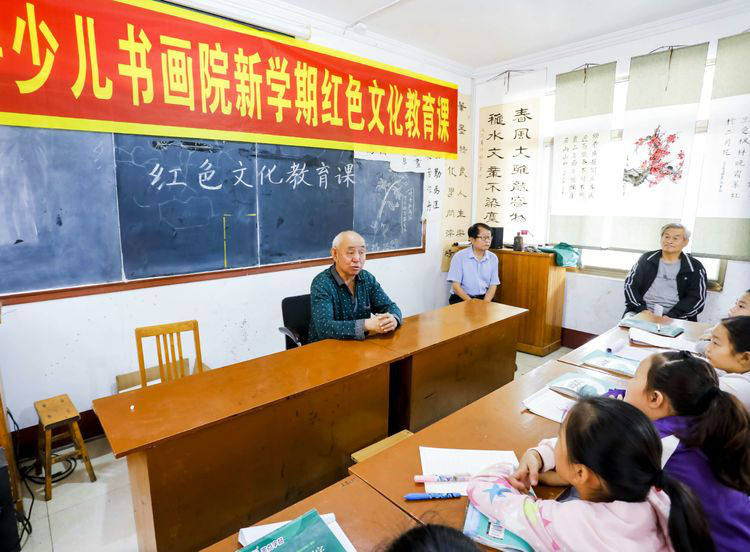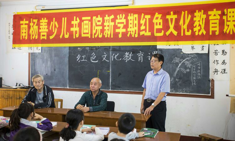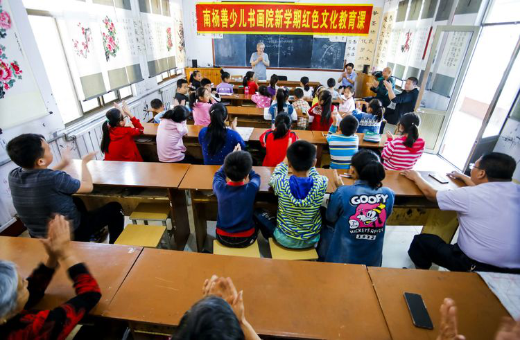 为庆祝新中国70年华诞,9月20日,潍坊临朐县老干部书画研究会在临朐县南杨善少儿书画院举办新学期红色文化教育课暨“我爱祖国、我向国旗敬礼”书画笔会。 临朐县老干部书画研究会党总支书记、会长赵洪海为同学们上了一堂生动的红色文化教育课。 临朐县老干部书画研究会副会长陈志顺用生动的事例讲述了新中国的发展史和爱国的重要意义。 红色文化教育课后举办“我爱祖国、我向国旗敬礼”书画笔会,三十多名老师和同学用书画的方式表达了对伟大祖国的崇敬之情。 红色文化教育提高了同学们的爱国意识、增强了同学们从小热爱祖国、悍卫祖国、为祖国奉献毕生的精神,同时祝愿伟大的祖国日益强盛、兴旺发达!