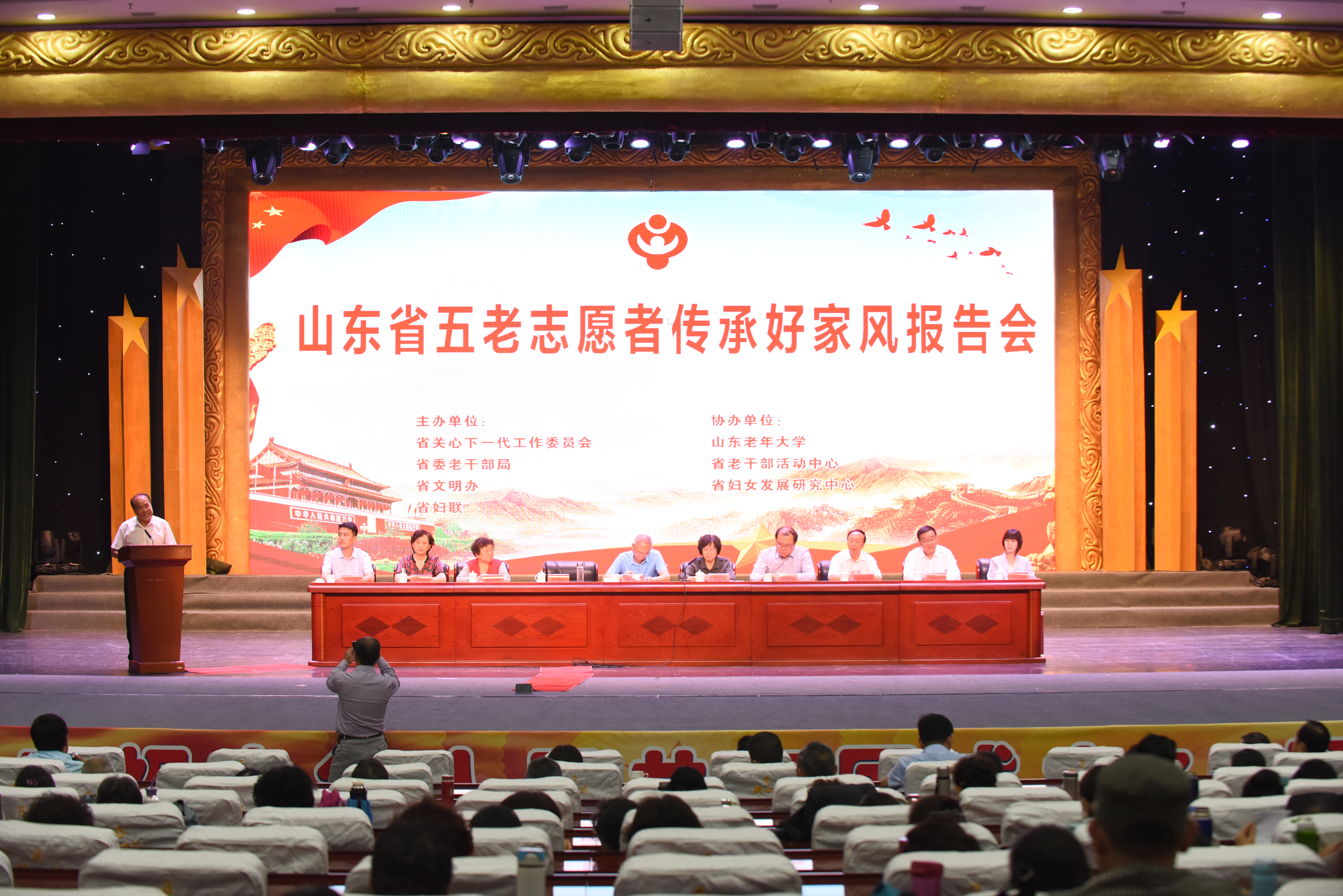 9月26日上午,省关工委、省委老干部局、省文明办、省妇联在济南联合举行山东省五老志愿者传承好家风报告会,并在会议现场同时举办传承好家风展览。报告会上,为青少年成长成才保驾护航的淄博市临淄区皇城镇小铁佛村关工委、心系青少年的热心人----诸城市政法系统关工委副主任高秀琴、难以割舍对孩子们挚爱亲情的退休教师团队----龙口市东莱街道“爱心奶奶团”、儒学文化的优秀传播者----曲阜市关工委儒学宣讲指导团团长孔令绍等四个先进集体和个人,介绍了他们弘扬中华民族优秀文化、身体力行传承好家风的先进事迹和宝贵经验。省关工委常务副主任赵玉兰主持报告会并讲话。省委老干部局副局长兼山东老年大学校长吕德义、省文明办副主任孙文利、省妇联副主席、党组成员孙应琢,省关工委副主任兼秘书长陈明甫、省关工委副主任王天瑞出席报告会。 为深入贯彻落实习近平总书记关于家庭建设的重要指示精神,全省各级关工委和广大五老志愿者广泛开展了“传承良好家教家风、带头创建文明家庭”主题活动,弘扬红色基因和优秀传统文化的家庭教育蓬勃展开,传承好家训好家风蔚成风气,文明家庭创建活动硕果累累,青少年思想道德建设成效显著,先进事迹和典型经验不断涌现。淄博市临淄区皇城镇小铁佛村关工委充分发挥老党员、老教师、老退伍军人的示范带头作用,身体力行晒家训、传家风,大力弘扬尊老爱幼、知书达礼、好学上进、诚实守信的传统美德。为青少年成长成才保驾护航。180多户人家的小村庄,近几年培育出8名博士、80多名大学生,改革开放四十多年始终保持零犯罪记录,创造出村风文明、村容整洁、邻里和睦、人才辈出的丰硕成果。诸城市政法系统关工委副主任高秀琴同志,二十多年如一日资助贫困大学生,她忠于职守,勤学不辍,先后获得国家二级心理咨询师、家庭教育高级指导师、中华传统文化家道教育高级讲师、法治校长等技能证书。退休之后,她发挥自己的特长优势,举办家庭教育工作室、勤耕国学讲堂和家道教育公益讲座,传播红色基因、国学文化、家庭教育、心理健康和法律知识,帮助家长科学育人,指导孩子克服心理障碍,引导青少年健康成长,被誉为“五老”精神的践行者、关爱事业的热心人。龙口市东莱街道“爱心奶奶团”,2012年10月组建以来,在第二实验小学家长学校举办家教专题讲座26次,解答家教问题300多个,授课家长4000多人次。她们对辖区内43家网吧、15家游戏厅实行巡查、暗访制度,先后帮助23名少年戒掉“网瘾”,恢复了正常的学习生活。她们自编自导舞台剧《红色记忆》,到社区、村居、学校巡演8场,观众达3000多人次。并开办“传习讲堂”,建立“爷爷奶奶一堂课”,到中小学校、幼儿园宣讲党的十九大精神,宣传习总书记亲民为民、关心下一代成长的故事。曲阜市关工委儒学宣讲指导团团长孔令绍同志,潜心研究儒学文化及其在国家兴旺、民族复兴中的地位作用,撰写创作了上百万字的著作和书稿。十八大以来,先后到二十多个省市宣讲儒学文化和家风传承,荣获“全国五好家庭”“第一届山东省文明家庭”“最美书香家庭”等荣誉称号。四位同志的演讲报告,事迹感人,品格高尚,展现出基层关工委组织和五老志愿者无私奉献的高风亮节,彰显出红色基因和优秀传统文化的强大生命力,在与会者中引起强烈共鸣。 赵玉兰在讲话中对四个先进集体和个人为传承优秀传统文化付出的心血表示崇高的敬意,给予高度的评价。赵玉兰指出,传承好家教好家风、弘扬红色基因和优秀文化,是关乎国家长治久安和民族兴旺发达的永恒课题,是各级关工委和广大五老志愿者义不容辞的社会责任。赵玉兰表示,我们要认真学习、深刻领会、努力实践习近平总书记关于家庭建设的指示精神,充分发挥关工委组织与五老志愿者的优势和作用,深入持久的开展“传承良好家教家风、带头创建文明家庭”主题活动,适应时代要求,创新方式方法,丰富活动内容,积累实践经验,进一步增强道路自信、理论自信、制度自信、文化自信,为传承红色基因,弘扬优秀传统文化,培养造就千百万勇于担当中华民族伟大复兴重任的时代新人,如期实现两个一百年的奋斗目标,贡献智慧和力量。