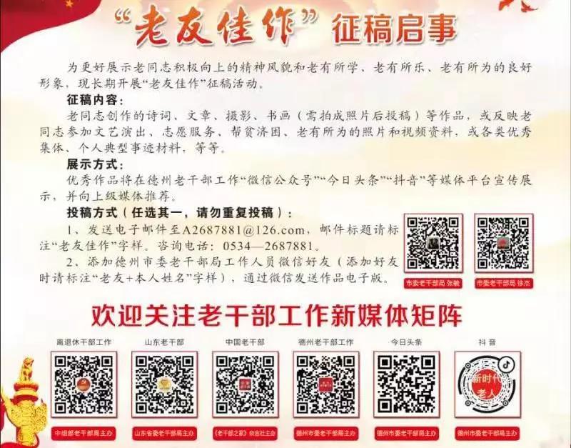 为热烈庆祝新中国成立70周年,近期,德州市各级老干部工作部门积极组织,广泛动员,以广大离退休干部为主体,以老年大学、活动中心、网络媒体等平台载体为依托,深入开展了系列活动,教育引导广大老干部不忘初心,牢记使命,持续为党和国家事业增添正能量! 1.“我看新中国成立70年新成就”活动 召开“我看新中国成立70年新成就”座谈会,认真听取老干部对70年来我国在政治、经济、科技、文化等方方面面取得的发展成就的感想体会,征求老同志对经济社会发展的意见建议,进一步统一思想认识、凝聚发展共识。 2.“向党说句心里话”主题党日活动 组织广大离退休干部党员开展重温入党誓词、讲述入党故事、革命传统教育等形式多样的学习教育活动,回顾党的光荣历史、优良传统和辉煌成就,引导老干部不忘初心、牢记使命,持续为党和国家事业增添正能量。 3.“我和国旗合个影”微心愿、微祝福活动 组织全市各级老干部通过“我与国旗合个影”、一句话“微体会”“微祝福”的形式,抒发广大离退休干部的爱国心声,展现对党和国家的赤子情怀,为祖国和谐发展、繁荣昌盛献上美好祝福。 4.“老友佳作庆华诞”主题征文活动 组织老干部通过文字、图片、绘画、摄影、回忆录等多种形式,讲述自己在新中国成立70周年进程中的切身感受,展现新中国成立70年以来经济社会发生的翻天覆地的变化,表达热爱党、热爱祖国、热爱家乡的真挚情感。目前,已征集各类老干部文艺作品200余幅,在微信公众号、头条号、抖音号展播20余期。 5.“银龄生辉颂祖国——开学第一课”活动 在9月份老年大学开学季,由老干部局和老年大学工作人员分批次走进老年大学课堂,深入开展爱国主义教育、革命传统教育,为老年学员讲述新中国成立70年来巨大发展成就,组织老年大学学员畅谈发展变化,歌颂祖国发展,畅想新时代。 6.“我和共和国同龄——专题采访”活动 联合《齐鲁晚报》、大众网、《德州日报》、《德州晚报》、德州电视台等省、市主流媒体,特别推出“我与共和国同龄”专题报道,选取德州市与共和国同龄的70周岁退休干部,通过老同志的讲述,集中展现新中国成立70年来国家和德州市各行各业的发展变化和伟大变革!目前,已开展专题访谈、报道近20期。 7.“集中走访慰问老干部”活动 国庆节前,组织各级各部门单位对离休干部普遍开展了走访慰问,向他们发放了“庆祝中华人民共和国成立70周年纪念章”和慰问金,积极征求离休干部意见建议,开展离休干部及遗属特困帮扶活动,帮助解决实际困难。 8.“不忘初心跟党走,老少齐诵祖国强”书画展 活动自今年4月份启动,共收到书画作品876幅,分书道老友组、小学组和中学组,展出题贺作品、书道老友作品、获奖作品146幅,充分展现了当代青少年和老干部书画爱好者书画艺术发展水平和精神风貌,激发了广大青少年爱党、爱国热情。 |