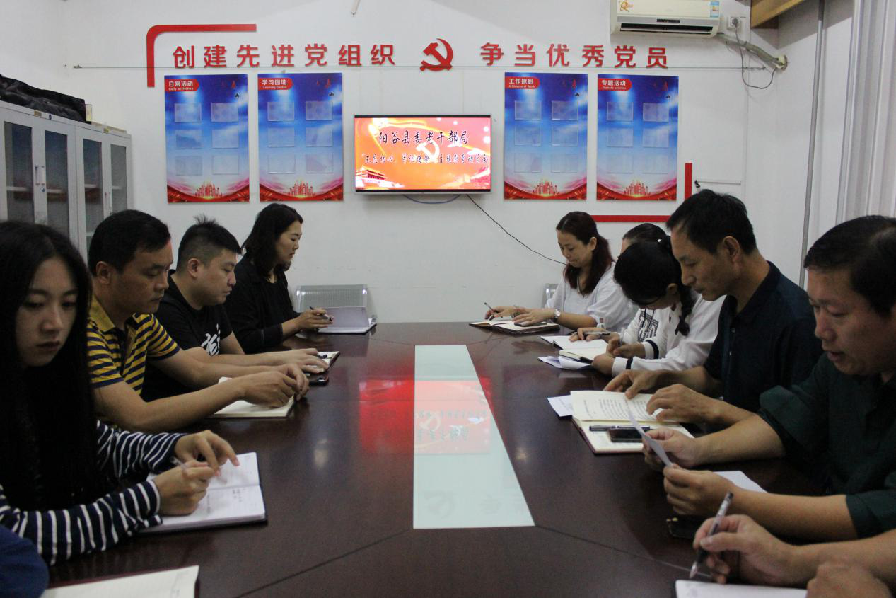 近日,聊城市阳谷县委老干部局在县老年大学一楼会议室召开“不忘初心、牢记使命”主题教育工作会议,局机关全体干部职工参加会议。阳谷县委老干部局副局长宋来云主持,县直第一巡回指导组到会指导,县委组织部副部长、老干部局局长张绍峰作动员部署讲话,县直第一巡回指导组成员曹璐璐同志作指导讲话。 县委组织部副部长、老干部局局长张绍峰从三个方面进行了动员部署,作为老干部工作者,要提高政治站位,充分认识开展“不忘初心、牢记使命”主题教育的重大意义,在学习理论上先学一步、学深一层,自觉用习近平新时代中国特色社会主义思想武装头脑、指导实践、推动工作;要强化政治担当,深入推动“不忘初心、牢记使命”主题教育扎实开展,按照“十二字”总要求,紧扣“五句话”目标,把老干部工作做实、做深、做细、做透,担当起新时代赋予老干部工作的责任和使命,创新推动老干部工作高质量发展;要强化组织领导,确保主题教育取得实效,把组织开展主题教育作为重大政治任务,认真统筹谋划,局领导班子成员要率先垂范,把主体责任扛起来,要做好结合文章,把开展主题教育同庆祝新中国成立70周年结合起来,同整治形式主义、官僚主义结合起来,同推进老干部工作转型发展结合起来,进一步激发干事创业精气神,确保“两手抓、两促进”。 县直第一巡回指导组成员曹璐璐围绕贯彻落实中央部署和省委、市委、县委要求,对县委老干部局开展主题教育提出了明确的指导意见,为全局深入开展“不忘初心、牢记使命”主题教育提供了指导遵循。 会上,阳谷县委老干部局副局长贾娜宣读了《阳谷县委老干部局“不忘初心、牢记使命”主题教育领导小组成员名单》。 |