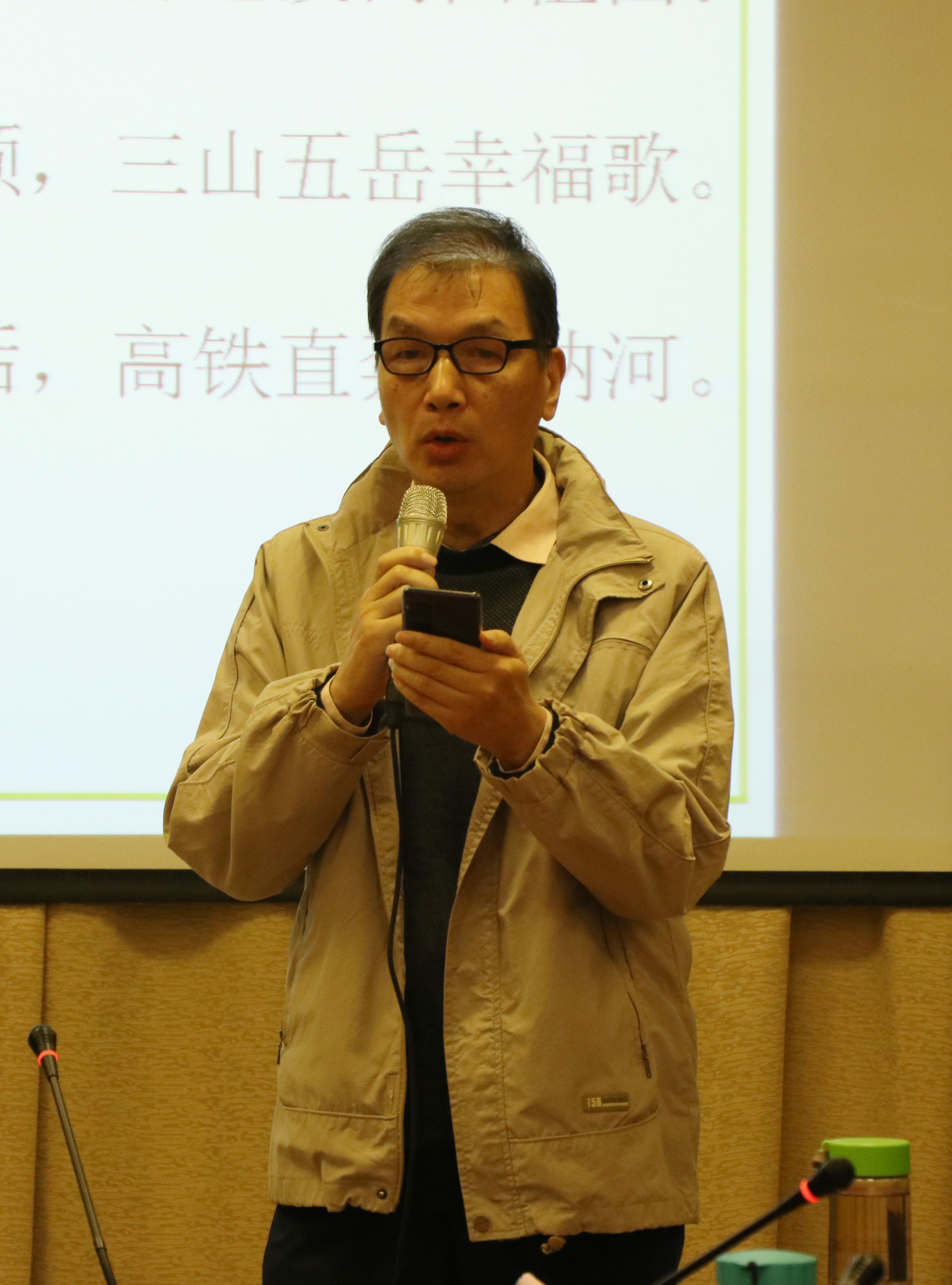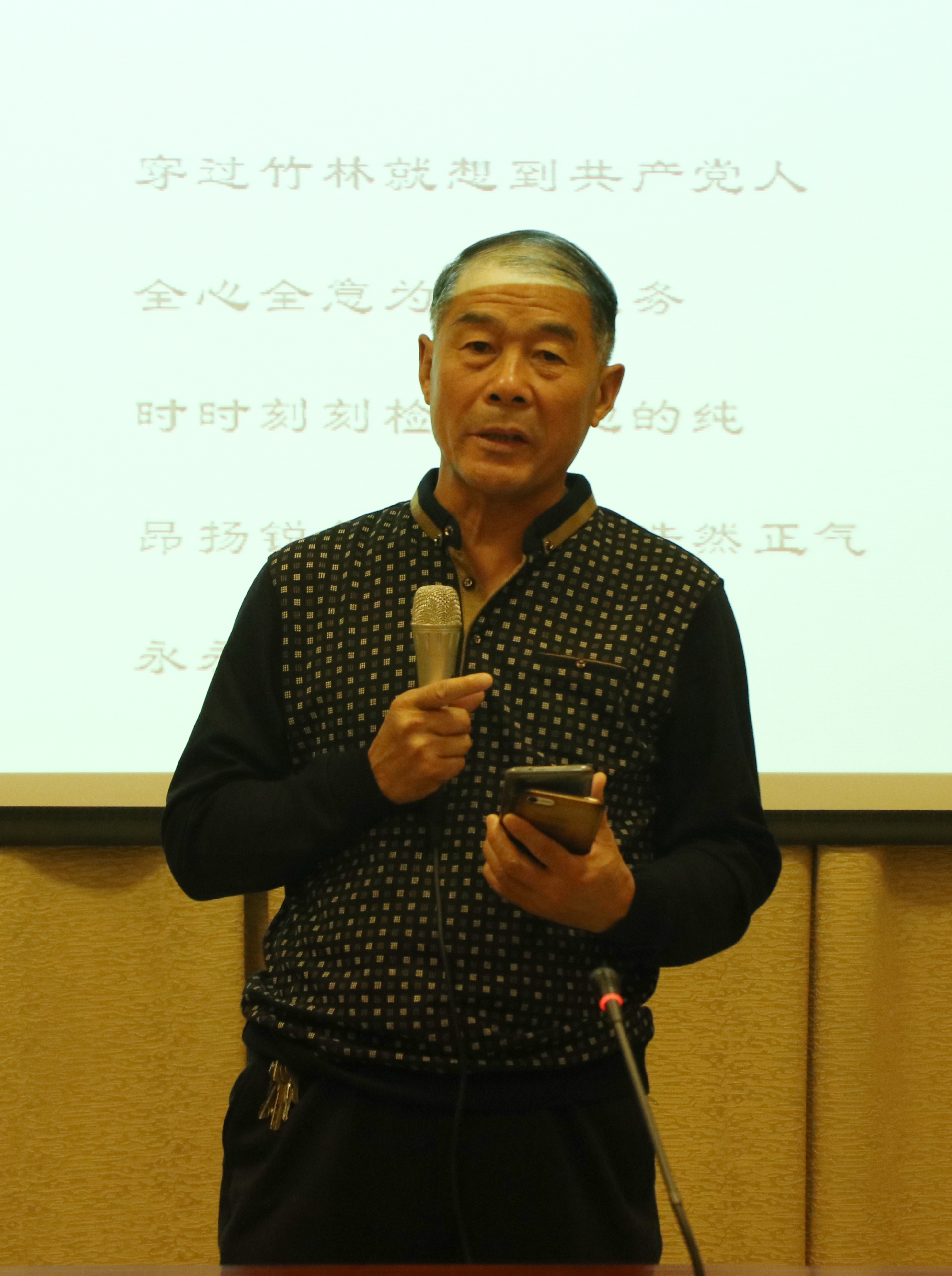 10月16日上午,山东老干部诗词诗词学会在老干部活动中心成功举办离退休干部诗词大赛优秀作品朗诵会,老干部诗词学会会长张维刚、明湖诗词学会副会长孙春亭以及山东老干部诗词学会、明湖诗词学会会员代表参加了此次讲座,讲座由老干部诗词学会副会长张健敏主持。 会上,学会会长张维刚对本次大赛进行总结,并对部分获奖作品进行评析,评委团组成人员王明兰、王来宾宣读获奖名单。随后,学会成员用饱满的感情朗诵部分获奖作品。 活动最后,大家全体起立,齐声高唱《我和我的祖国》,向新中国成立七十周年献礼! 会议结束后,参会人员合影留念。 |