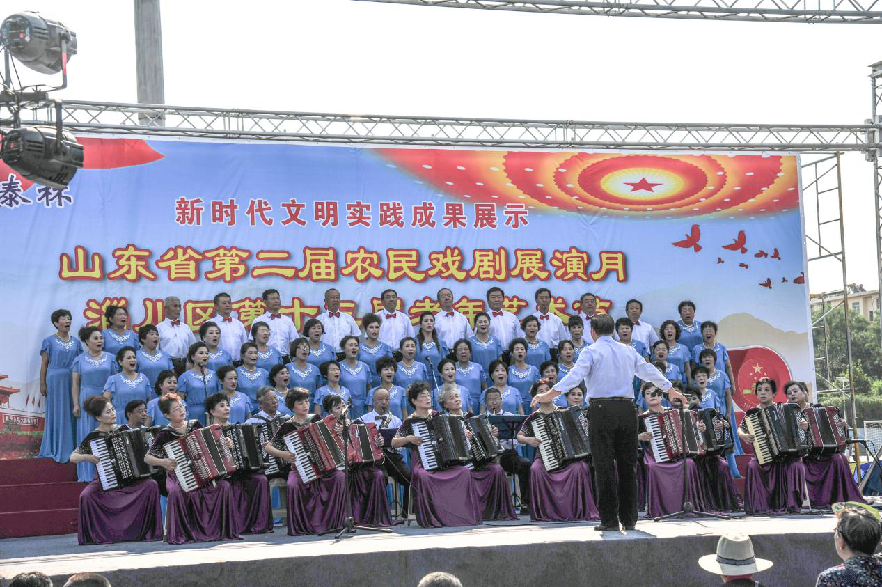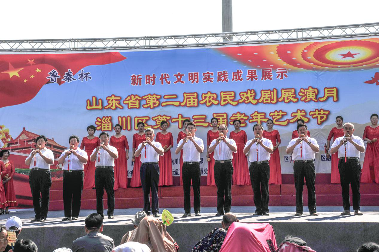 为庆祝新中国70华诞,日前,淄博市淄川区第十三届老年艺术节正式开幕,区领导白向坊、郭成宏、朱枭杰、李洁出席开幕式。本届老年艺术节历时5天,将有33家优秀老年文艺剧团为城乡群众带来丰盛的文化大餐,淄川区老年大学艺术团精心编排了10个节目参加首场展演。 演出在大合唱《没有共产党就没有新中国》《祝福祖国》中拉开序幕。舞蹈《古风扇韵颂中华》、京剧《国粹芬芳献给党》、萨克斯《好运来》、时装走秀《八月桂花遍地开》等节目依次上演,为观众带来一场精彩的视听盛宴。此次老年艺术节,淄川区老年大学共组织200余名老干部、老年学员参加演出,节目有乐器、舞蹈、京剧、歌曲、合唱等多种形式,充分体现了新时代老干部、老年人对党、对祖国的感恩之情。 近年来,淄川区高度重视、支持老年文化工作,老年艺术节成为了老年人、老干部陶冶情操、展示才华的舞台,老年艺术节以丰富多彩的艺术表现形式,充分展示了淄川区老年人、老干部不忘初心、继续前行,积极向上的精神面貌,为庆祝新中国成立70周年营造了隆重、喜庆、热烈、祥和的节日气氛。 |