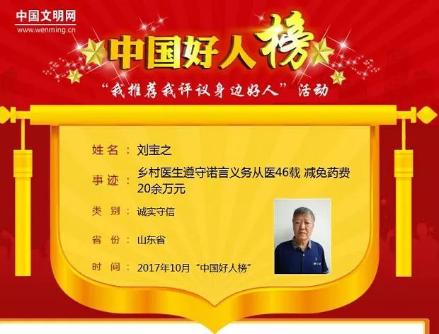 为了一句誓言,不收诊疗费、义务从医48载,是群众依赖的“赤脚医生”; 为了一句“许诺”,8年悉心医护同村鳏寡老人,成为左邻右舍爱戴的“党员医生”; 为了一句“家训”,清白行医,不用一粒非法药物,面对每年百万集体钱款不动分文,成为领导、群众拥护的“支书医生”…… 几十年来,他为了当初的“那句话”,一辈子踏踏实实做一名“小村大医生”。他叫刘宝之,72岁,家住山东德州齐河经济开发区谭屯村。他说“‘小医医身,大医医心’,咱把活干好了,老百姓不光说咱好,还说咱党好咱干部好。” 笔者来到仅有660人的德州齐河谭屯村,近距离感受刘宝之身上的诚信之美…… “赤脚医生”:一句誓言义务从医半世纪,青年小伙变老汉 刚走进刘宝之设在自家的诊室,就遇到来量血压的村民张兰胜。“宝之好人啊,你什么时候叫,他什么时候到,这40多年来,俺村里可亏了他了。”听说笔者是来写刘宝之的,张大爷主动介绍。 刘宝之当初做“赤脚医生”,缘自一次意外事故。1969年寒冬的一天,略有些医学知识的刘宝之被邻居喊了去,这家的儿媳分娩,但是产妇患有先天性心脏病,呼吸困难,而且又大出血,虽然刘宝之使尽了浑身解数,但却无力回天,最终产妇黯然离世,即将出生的男孩也因母亲去世而夭亡。 刘宝之呆立在一边,满手的鲜血映着他一脸的茫然。一家人撕心裂肺的哭声,就像锥子一样,一下,一下,扎着刘宝之的心。随后赶到的防化连队军医告诉村支书张进才说:“你村该培养个赤脚医生啊,像这种情况,如果处理及时,人死不了。” 听到这句话,刘宝之噙着眼泪,走上前对支书拍着胸脯说:“让我去吧,我会一辈子给咱村老少爷们义务看病,绝不能再发生这种惨剧。” 为了这一句话,刘宝之干“赤脚医生”一干就是48年。“赤脚医生”,是上实际六七十年代出现的名词,指未经正式医疗训练、仍持农业户口的“半农半医”人员。在齐河县原焦斌乡集中学习两年后,24岁的他正式成了赤脚医生。 刘宝之当“医生”,热心半辈子。有一年,村里流行疟疾,上级发药,刘宝之挨家挨户送到农户手里。曾经有个外村,因为发的乙胺喹啉有甜味,被孩子误吃,导致死亡,所以刘宝之每次送药,都会亲眼看着每人吃下去,才算了事。 血吸虫防疫,必须是在晚上,因为按照血吸虫活动规律,白天查不到,只有夜晚十一点才能查到。每天晚上十一点,刘宝之带着卫生院医生挨家防疫,有好多次,被狗咬伤。 在刘宝之当初的誓言里,“义务”是关键词。那时,每人每天工分7分钱,其他村的赤脚医生,一般领双份工分。刘宝之母亲早逝,跟父亲、兄嫂一起生活,人多日子穷,勉强能填饱肚子。但是,他拒领村里给的赤脚医生那份工分。理由是“俺当初说了不要钱,就得守信用,绝不收钱。俺家穷,老少爷们用不着俺什么,俺给大伙服好务,大伙心里有俺就够了。”48年来,他只靠种地养家糊口,没有因为当赤脚医生收群众一分钱诊疗费,没有跟集体要过一分劳务钱。 “党员医生”,一句许诺医护本村老人,以身敢换大爱情 “天地之大,黎元为先”,这是刘宝之入党后,经常说的一句话。他还说:“为什么入党,就是为了更好地给老少爷们办实事,丝毫不能有别的目的。”因此,别人不屑于做的事他做,别人不敢做的事他做。 就说2014年8月的一天,刘宝之驾驶电动三轮去齐齐发大市场,突然,远远看到有位老人侧身躺在路边喊“救命”。几拨人从身边过去,有骑自行车的,有开汽车的,也许是怕老人“碰瓷”,都视若不见,绕着离开。 刘宝之猛加油门过去,把老人抱到车子上。老人叫杨宜金,是前杨村人,曾患脑血栓,迷了路,又不小心摔倒了。“俺在这里老长时间了,没个人管。”看着刘宝之,老人像孩子一样呜呜地哭起来。 类似这种遇难伸手的事,刘宝之已经记不清管过多少起了。而更让村民铭记的是,他因为一句许诺,从2007年起,医护本村李存志老人达8年之久。 李存志无儿无女,2007年夏天突患脑血栓,偏瘫在床。一天晚上,刘宝之走进他黑漆漆的屋子,来给他打针。“李大哥!咱打针!” “宝之兄弟,我这样的人还打什么针啊?老了老了,身边连个支应的人也没有,打一针瞎(浪费)一针啊!”说到这里,黑黢黢的炕角上传来啜泣之声……刘宝之为李存志打完针出来,才发现自己早已泪流满面。 当晚他就找到村委会其他成员商量,“咱不能眼看着咱村的老人儿在家等死啊!真要那样,老少爷们会指着脊梁骂咱的支部骂咱的村委啊!”最后议定,村集体出资负责李存志晚年生活,医护则由刘宝之负责。 其实,刘宝之不仅负责医护,还负责所有的生活照料。第二天,他就用平板车把李存志拉到已收拾好的村委会一间屋子里。每天为他做三餐饭,每天打针吃药,就连端屎端尿的活也揽下来。要知道,刘宝之也是一个曾患脑血栓的人,于是,在刘宝之家到村委会的小路上,每天都会按时出现刘宝之歪歪斜斜的背影。 2015年,李存志去世了。在村委会组织的送葬仪式上。好多村民落泪了,他们说:“俺们倒不是为李存志,因为每个人都会死;是看到宝之俺们心里揪得慌,他自己病得那么厉害,还照顾老李,这些年难为他了……” 村民刘司怀的老婆,碰到刘宝之上车去省城医院看肝病,拉着车门,眼里含着热泪,一个劲地说:“宝之啊,你可别死啊,你要死了,俺这些人心里不知道得多难受,宝之!”人心换人心,村民们谈起刘宝之,总说:“他可是俺们谭屯村养得起用得动留得住的好医