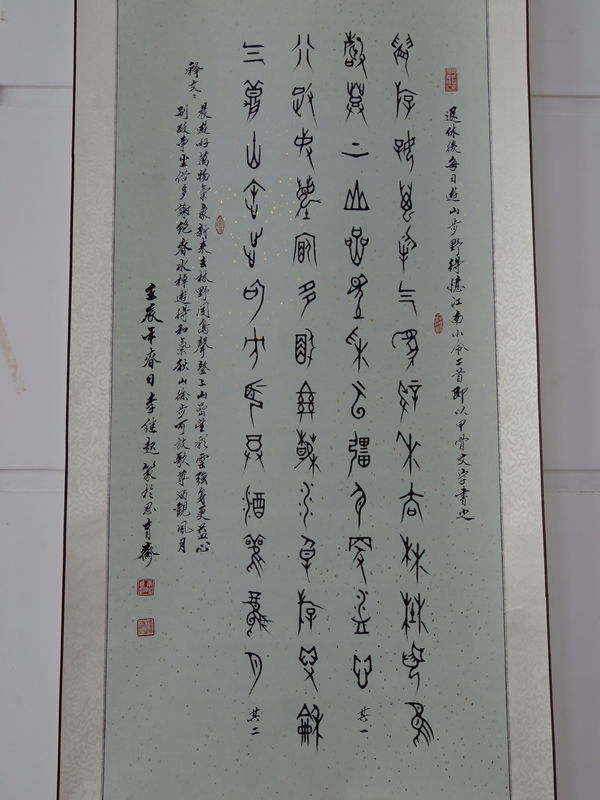 这次书画展,展期7天,共展出三人近年来创作的100多幅作品。开幕式当天,全市热爱书画艺术的老干部纷纷前来参展赏析。在时乃文作品展区,他的行书大小相兼、收入结合、疏密得体、浓淡相融,深含“一笔自由体,三审见风流”的韵味。在李继起作品展区,其金文结构严谨,圆劲遒美,章法精湛,娴熟洒脱;笔下墨竹干劲叶秀,简洁流畅,布局清新,奇趣横生;篆刻以汉印为基础,兼容金文,试用甲骨,古朴苍劲,刀刀见功。在张健作品展区,可清晰看到“提笔有踪,落墨有源”,其楷书形质严谨,笔画精到,挺拔秀丽,玲珑剔透;行书布白恰当,行气贯通,节奏自然,格调高雅;小草结字准确,点画讲究,脉络清新,精巧细致。