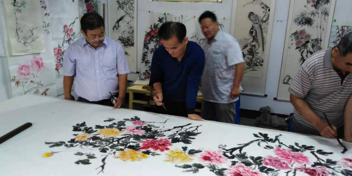 近日,淄博市淄川区25名老干部书画爱好者共同创作“盛世牡丹图”,以56朵牡丹代表56个民族团结一心,寓意民族团结之花处处绽放,借以献礼祖国母亲70华诞,共祝祖国繁荣昌盛。