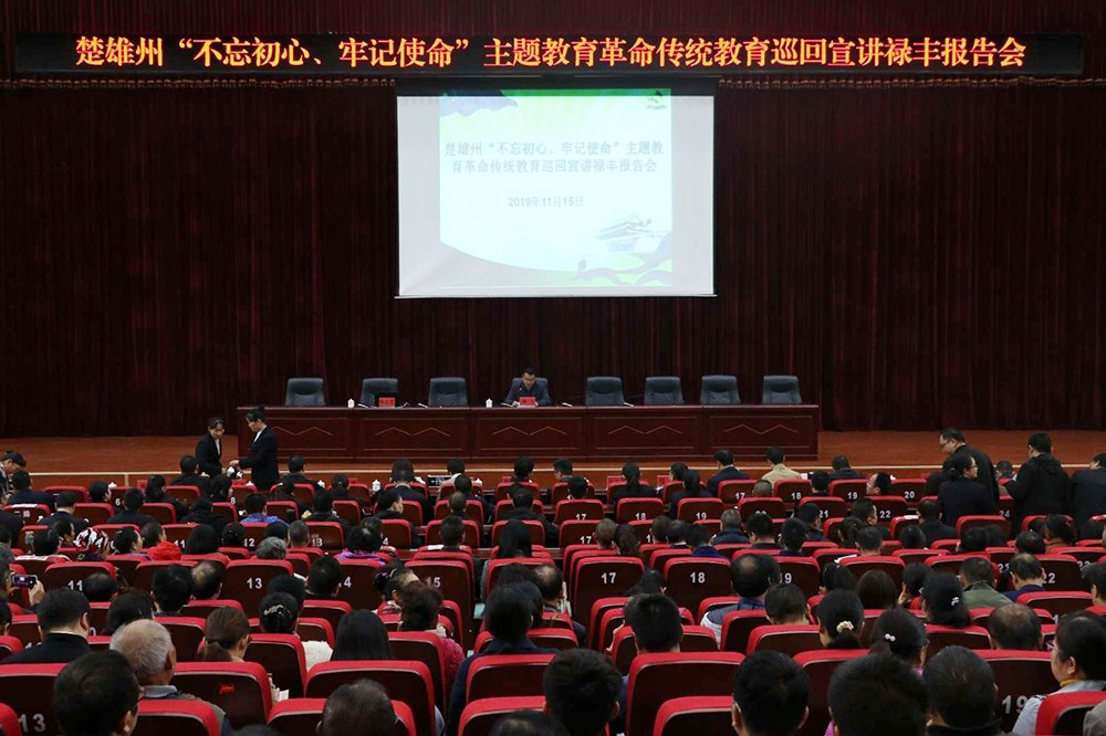 2019年11月15日上午,云南楚雄州“不忘初心、牢记使命”主题教育革命传统教育巡回宣讲禄丰报告会在禄丰县委党校举行。禄丰县委、县人大、县人民政府、县政协领导,县级各部门副科以上领导干部、离退休干部共458人参加报告会。省委老干部局副局长杜少波、省委老干部局退休干部处副处长苏中菊、州委老干部局副局长习刚等省州领导到会指导。 县委常委、县委组织部部长黄飞主持报告会。报告会上,楚雄州老干部代表、楚雄州中医医院(云南省彝医医院)离休干部张之道,老战士代表、楚雄州市场监督管理局退休干部仲显荣,老专家代表、楚雄技师学院退休干部马德标,老教师代表、元谋县老城中学退休教师张汝发,老模范代表、楚雄州农科院退休干部邹萍依次做了宣读,“五老”用朴实的语言、生动的事例,叙述了自己退休前后的平凡真实、拼搏奋进的一生。 老干部代表张之道以《生命不息,奋斗不止》为题,讲述了自己“不忘初心、牢记使命”,吃苦耐劳,退而不休的革命精神。他说道:“我的一生受党的教育,得到了党的培养,党和人民给我的太多了,我做的还远远不够,我将来还要继续工作,为实现共产主义奋斗”。 老战士代表仲显荣以《永葆军人本色,展示军人风采》为题,用自己参加对越自卫反击战真实事迹,阐述了自己为保卫祖国领土,不惜牺牲,把个人生死和自己的小家置之度外的英勇事迹,体现在对敌人的无比憎恨和对祖国无限的忠诚,对人民的无比热爱之情。 老专家代表马德标《以矢志职教,助力扶贫为题》,讲述了他积极投身扶贫攻坚工作,用自己的知识开展科教扶贫,心系贫困群众,不畏艰辛,脚踏实地,深入田间地头,为贫困群众排忧解难,被人们亲切地称为“扶贫专家”。 老教师代表张汝发以《初心铸忠魂,诲人永不倦》为题,体现了他教书育人的崇高师德,用人间大爱像对待自己的亲生儿女一样帮助一大批问题儿童,他以“要点燃别人,你身上就要有火种,要照亮别人,自己身上要有亮光”的人生格言激励自己,把帮教工作作为人生执着的追求。 老模范代表邹萍以《心系农业,覆职为民》为题,讲述了作为一名全国人大代表知党恩、跟党走,以拼命三郎的精神投身农业科技事业,报效国家的感人故事。 |