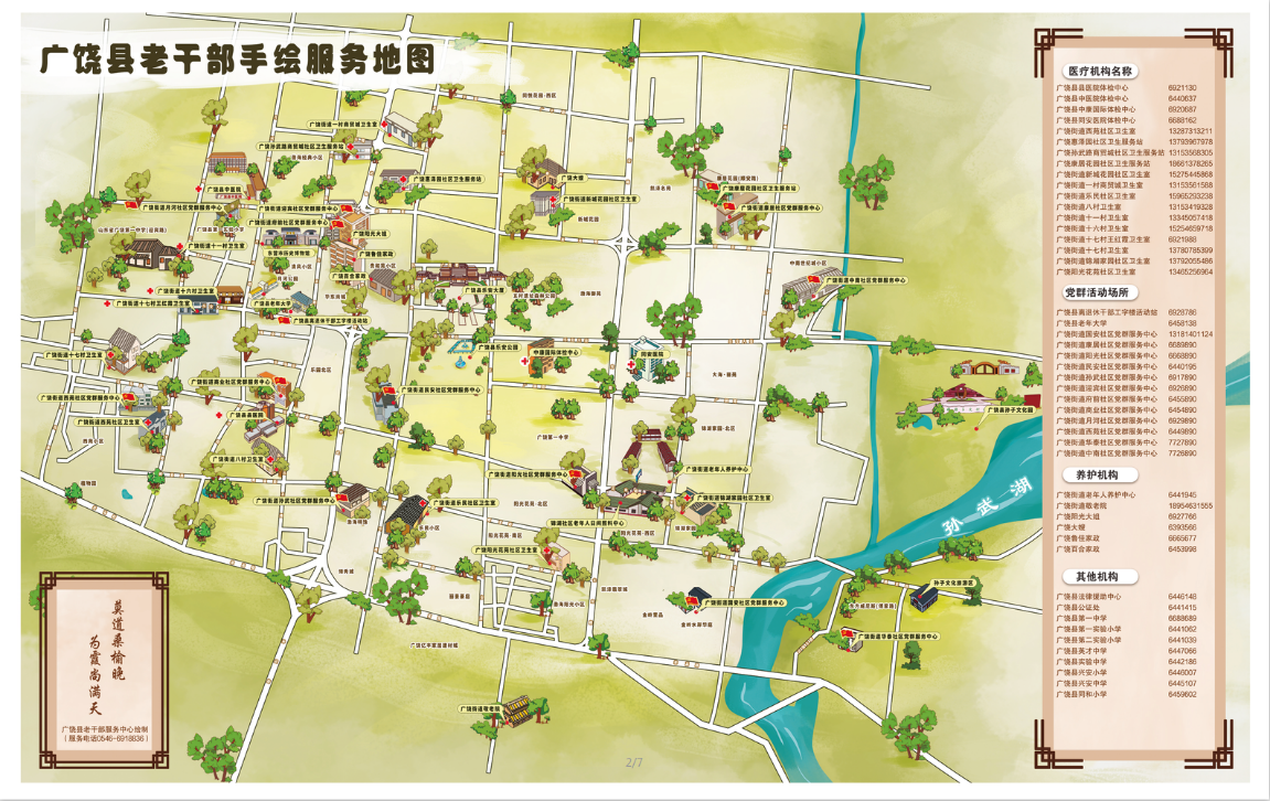 主题教育期间,东营广饶县老干部服务中心牢固树立精准服务理念,采取座谈交流、入户走访等形式深入开展调查研究,问需老干部。调研中发现随城市发展变化,医疗机构、养老服务、家政服务、党建阵地等场所位置发生变动,老干部对位置、联系方式等信息掌握不清,为老干部就近学习、就近活动、就近得到关心照顾、就近发挥作用带来不便。 广饶县老干部服务中心坚持即知即改,积极争取广饶街道及相关县直部门单位配合,通过实地采集、现场核实等方式摸清医疗机构、党群活动机构、养护机构及信息咨询机构有关信息,编制《老干部手绘服务地图》。目前服务地图已编制完成,小小的一张手绘地图中,内容涵盖了城区文化活动、党群服务、养老服务、老年教育、医疗卫生等场所信息,已印制2000余份,面向全县离退休干部发放,为老干部“四就近”活动提供了有力保障。 |