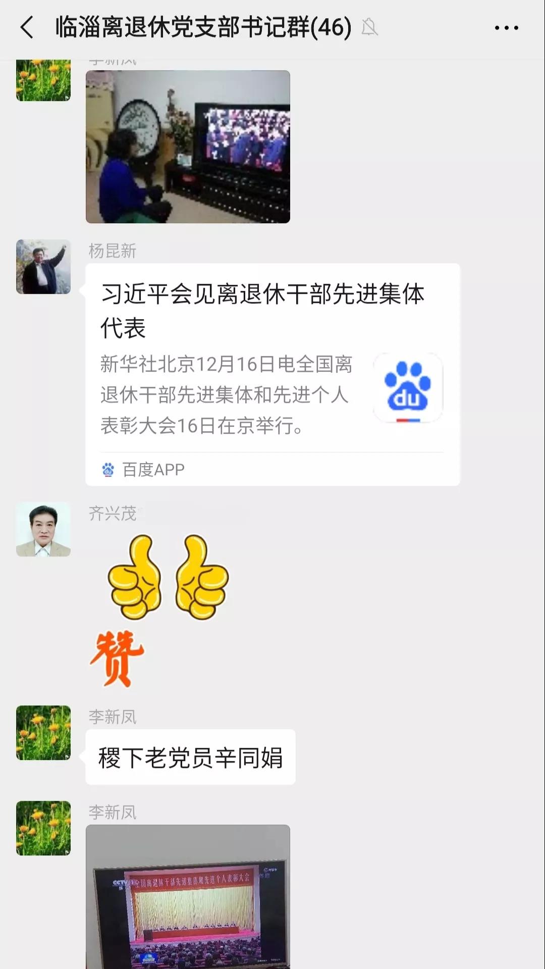 12月16日,全国老干部工作先进集体和先进工作者表彰大会在北京召开。中共中央总书记、国家主席、中央军委主席习近平在人民大会堂亲切会见受表彰代表,向他们表示热烈祝贺。“双先”表彰大会召开后,淄博市临淄区各离退休干部党支部、离退休干部和老干部工作者准时收听收看《新闻联播》大会盛况,习近平总书记的重要指示引起广泛热议,广大离退休干部和老干部工作者深受鼓舞,反响热烈,掀起一轮学先进、争先进的热潮。 离退休干部热议大会盛况 临淄区人大机关、政协机关等多个离退休干部党支部召开会议,学习讨论全国老干部工作‘双先’表彰大会精神。 淄博市人大原副主任杨汝奎表示:“中央召开老干部工作‘双先’表彰会,习总书记作出重要指示,看后非常受鼓舞。习总书记的指示说出了我们的心里话。不忘初心,为党的事业增添正能量,实现党的“两个一百年”奋斗目标、为中华民族的伟大复兴发挥余热,是我们的责任,希望广大老同志共勉。” 淄博市政协原副主席张建祥表示:“这次全国老干部工作‘双先’表彰大会的召开充分体现了党和国家对老干部的关心尊重,对老干部工作的重视,表彰先进、树立榜样,必将进一步推动新形势下老干部工作的高质量发展。” 临淄区人大原副主任、全国离退休干部先进个人、离休干部刘芝田说:“习总书记的指示体现了总书记一贯的尊老敬老思想,作为离休干部,感到很温暖。今后一定要认真学习习近平总书记对老干部工作的重要指示精神和全国老干部工作‘双先’表彰大会精神,不忘初心、牢记使命,继续发挥余热、老有所为,为党的事业增添正能量。” 临淄区关工委常务主任张士友表示:“中央召开全国老干部工作‘双先’表彰大会充分说明党和政府对老干部工作的高度重视,我们退休干部要围绕党委、政府脱贫攻坚决战贫困的大局发挥余热,在关心下一代工作、帮助贫困人口脱贫、化解矛盾纠纷等方面主动发挥作用、做好工作,为党委、政府排忧解难。” 老干部工作者热议大会 收听收看《新闻联播》大会盛况后,广大老干部工作者同样深受激励和鼓舞。 区委老干部局离退休干部党支部书记纪明林表示:“党和政府这么关心、重视老干部工作,作为老干部当中的一员,就应该自尊、自爱、自强,不忘初心、牢记使命,为伟大的社会主义现代化建设事业贡献自己的绵薄之力,做到“老牛力尽丹心在,壮士力衰赤胆悬,坚持做一个永不褪色的共产主义战士。” 区委党校离退休干部党支部书记张云立赋诗一首: 习主席接见离退休干部先模代表观后感 主席关怀老干部, 先模代表进首都, 接见如同加油站, 激励不把使命辱。 人生价值在奉献, 退休无须驻脚步, 党旗添彩吾有责, 发挥余热才幸福。 稷下街道离退休干部党支部书记李新凤说:“收看全国老干部工作‘双先’表彰大会后,我的感触颇深。作为受党培养教育多年的退休干部,虽然离开了工作岗位,但党员身份没变,只要党有需要,就要继续发挥余热,充分发挥老干部作用,深入推进为党和人民事业增添正能量的活动。” 凤凰镇离退休干部党支部党务干部丁鼎说:“表彰大会上涌现出的先进典型让人深受感动与激励,作为年轻干部要认真学习先进典型,时刻提醒自己、激励自己更加努力工作。” |
