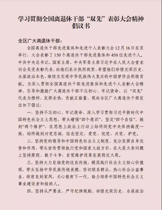 12月16日,全国离退休干部先进集体和先进个人表彰大会在京举行,此次大会共表彰了150个离退休干部先进集体和450位先进个人,其中,威海市老年大学学员党委书记毕爱香荣获“全国离退休干部先进个人”称号。大会召开后,威海市各级老干部工作部门纷纷响应,通过举行宣讲活动、开办学习培训班、开展志愿服务、举办座谈会、书写倡议书等多种形式,组织广大老同志和老干部工作者深入学习领会会议精神,紧密结合本地实际,认真研究谋划贯彻落实的具体措施,全市掀起了学习“双先”会议精神的热潮。 组织一次主题宣讲 “全国离退休干部先进个人”毕爱香 威海市老年大学邀请“全国离退休干部先进个人”毕爱香作事迹宣讲,她从抓好党建、关心下一代、助力红色教育基地建设等多方面为大家讲述了自己的工作做法和心路历程,与会人员纷纷表示要以毕爱香为榜样,积极为党和人民的事业增添正能量。乳山市老干部宣讲团走进乳山寨镇离退休干部党支部,为老干部宣讲“双先”表彰大会精神,倡导老干部学习先进、争做先进。乳山寨镇离退休干部党支部书记于乐亭表示:“宣讲活动让我们更加全面、更加深入地学习了大会精神,我不仅要做到个人向典型学习,更要认真履行离退休干部支部书记的职责,带动支部向典型集体学习,充分发挥离退休干部党组织的战斗堡垒作用,带领老干部凝心聚力,永葆政治本色。” 进行一次培训学习 环翠区积极组织局机关和各离退休干部党组织围绕“双先”会议精神举行学习交流会,深入学习贯彻“双先”表彰大会精神,总结近年来老干部工作的成果,研究部署今后一段时期的工作安排,进一步抓好老干部工作部门的自身建设,切实打造敬老、爱老、为老、助老的老干部工作部门。退休干部温淑珍表示,通过此次活动,深切感受到党中央对离退休干部非常关心,对老干部工作非常重视。受到表彰的老干部的事迹十分感人,深感自己与先进人物有不小差距。今后,一定按照中央老干部工作的有关要求,讲好中国故事,弘扬中国精神,传递中国声音,争做先进典型。 开展一次志愿服务 荣成市老干部志愿者们以实际行动践行习近平总书记提出的“珍惜光荣历史、永葆政治本色,继续为实现中华民族伟大复兴的中国梦作出积极贡献”的殷切期望。城西、寻山、斥山、崖头老干部志愿服务队组织40余名志愿者到当地敬老院开展慰问演出、卫生清扫、包饺子等活动,并向老人们传达“双先”表彰的喜讯;马道、靖海老干部志愿服务队组织志愿者到烟墩角自然保护区、沙窝广场等地清理垃圾,美化环境;滕家4名老干部志愿者到学校开展了爱国主义教育讲座,在青少年中倡树赤子情怀,弘扬革命精神。 举行一次座谈讨论 经区围绕“如何学习‘双先’为社会作力所能及的贡献”、“讲述身边的先进故事”、“我为本地社会发展献一策”等主题,组织老同志开展座谈交流,老同志们踊跃参与,积极献言,凝聚了为党的事业增添正能量的共识,大家一致表示,今后将以“双先”典型为标杆,一如既往地发挥先锋模范作用,围绕国家发展大局,在经济建设、脱贫攻坚、关心下一代等方面主动发挥作用、做好工作,为本地发展再作新贡献。 印发一份倡议书 文登区印发《学习贯彻全国离退休干部“双先”表彰大会精神倡议书》,发动广大离退休干部第一时间学习了解会议精神,同时,在网站上开辟学习专栏,公众号上推送先进典型事迹简介,全面展示离退休干部先进典型的风采,向广大离退休干部传递正能量,引领“学典型、做典型”的新风尚,激励引导老干部不忘初心,永葆本色,继续为本地建设贡献智慧和力量。