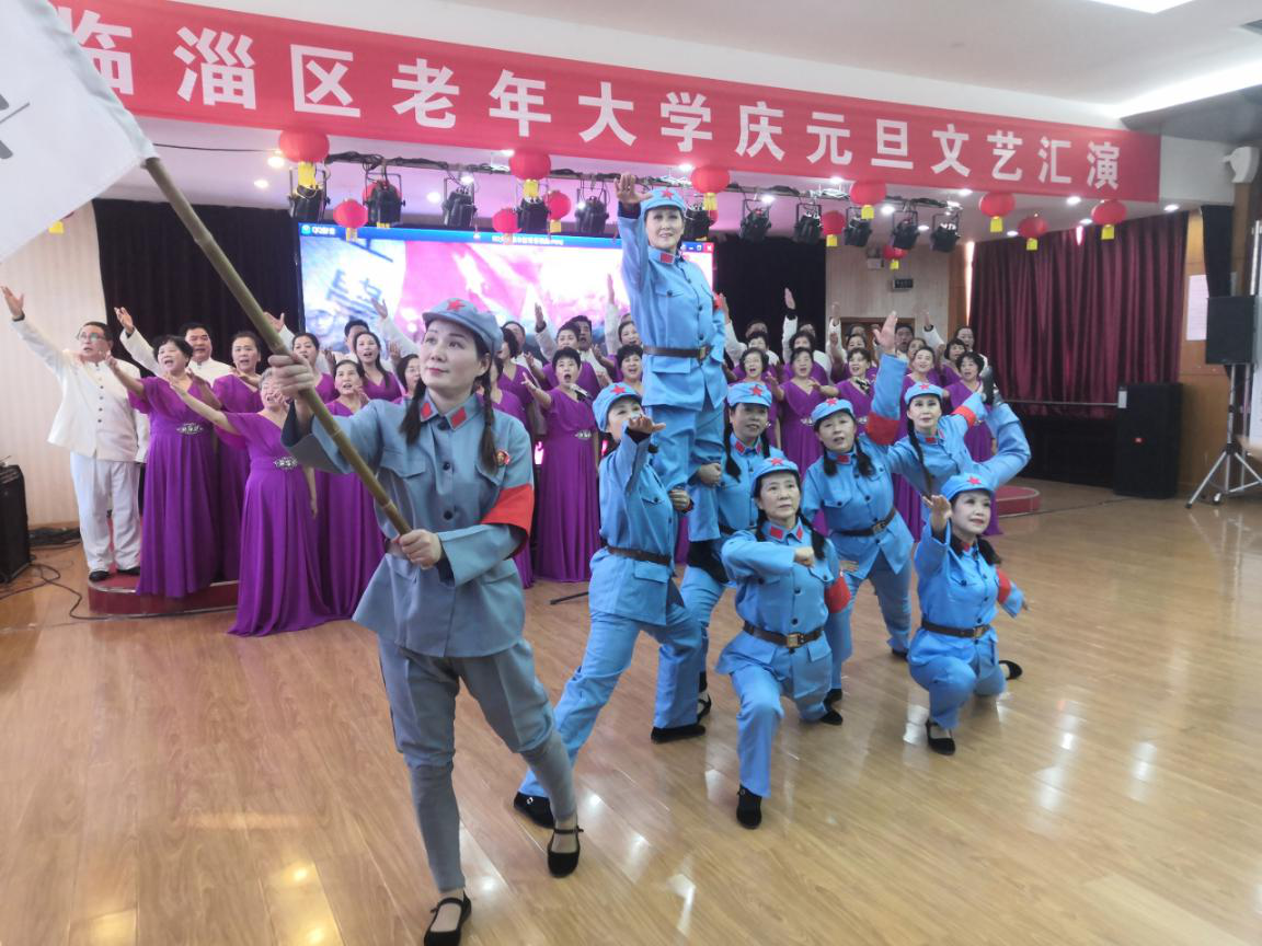 12月27日,淄博临淄区老年大学举办“庆元旦”文艺汇演,为深入推进“不忘初心、牢记使命”主题教育,扎实学习宣传贯彻党的十九届四中全会精神,广大离退休老同志和区老年大学学员们编排了大家喜闻乐见的文艺作品致敬革命先烈,讴歌伟大祖国,共同展望未来。 演出在欢腾的舞蹈《最美的中国》中拉开序幕,声乐班带来大合唱《七律·长征》,歌颂了中国工农红军不怕牺牲、英勇奋战,用生命和鲜血换来了长征胜利的英雄气概;朗诵班带来的《奋进新时代》讴歌了新时代、新生活,整场演出共有17个优秀节目参演,赢得了全场阵阵掌声与喝彩,演出在合唱《向往》中落下帷幕。 |