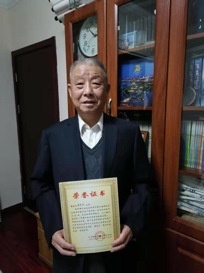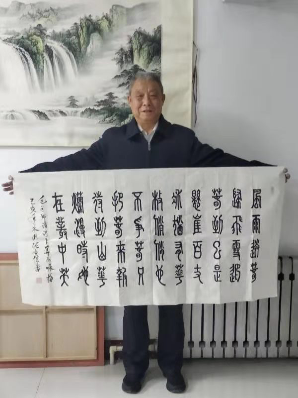 “70多岁的张务信老人,坚持不懈苦练书法,成为荣获金银奖专业户,全力播爱济南不停步。”近几年来,这样的传说,让我耳朵起了茧子。1月5日,我走近他和他的“朋友圈”探虚实,结果事实比传说的还要真实丰满生动。 今年74岁的张务信是济南市济阳区市场监督管理局一名退休老干部党员。“我自幼酷爱书法,老伴笑说我‘见异思迁’,大半辈子跟书法谈恋爱。”身体硬朗,精神矍铄的张务信老人手势里谈话神采飞扬,幽默风趣。几十年如一日,他手不释卷、手不离笔、心不离帖,潜心研究学问,勤学苦练书法。并数次参加书法专业培训班,书法技艺大有长进。2010年9月,他为在济南工作的儿子带孩子,报读了济南老年大学书法系高研班,更是把身心贴在书法上,如饥似渴,潜心学习。他在山东大学中文系教授张树新老师的指导下,专攻篆书兼学行、楷、草体。无论兼职工作多繁忙,每日都保证数小时的书法练习时间,或读帖、或临摹、或创作,真正做到了“不教一日闲过”,使书法技艺扶摇直上。 “务信的书法有了质的飞跃,篆、隶、楷、行各种书体精熟,尤其篆书更是独树一帜,既有古帖之味,又有个人风格。”熟悉他的济南著名书法家党茂领、潘成溪介绍,其篆书笔画圆润,挺遒流畅,笔笔如铁线,结体端庄严谨,字形稍长,养眼润心,令人喜爱。2014年,张务信凭借厚重的书法造诣以及对书法事业的贡献,被吸收为中国书画家协会会员、山东省老年书画研究会会员、济南市书法家协会会员。其书法作品数次参加国内外大赛或展出,先后荣获省和全国金奖36次,银奖28次,荣获“中国红色卓越书法艺术家”“中华功勋书法家”“共和共红色艺术家”等荣誉称号20多项,还出版发行了个人书法选集。其大名及其书法作品入编《中国篆书选集》《中华书法大典》等40多部大型书画作品集。 “张务信老师是我们济南文物保护与收藏协会书画研究会副会长、办公室副主任,他为人质朴,待人诚恳,公道正派,光明磊落,遇事沉稳,和蔼可亲,一派老者风范,尤其他那份常做公益的善心更令人敬佩。”跟他一起共事的原济南军区司令部军训和兵种部部长、济南文物保护与收藏协会书画研究会副会长周德专说,他勤勤恳恳,兢兢业业,分内工作有声有色,受到上级表彰。同时,他“桑棵外头找地儿”揽累受,找苦吃,义务送文化下基层,5年来从未停歇脚步。先后到山东匡山集团有限责任公司、山东龙达工程造价咨询有限公司、山东乾云启创信息科技股份有限公司、二七社区、大观园社区等单位义务书写书法作品1000多幅。 “务信大哥书法名气越来越大,不少人找他买书法作品,他从未卖过,倒是常常免费送给大家。”济阳区三发物业公司总经理吴学兴介绍,张务信就住在这个小区,有时双休日回来小住,他就到物业办挥毫泼墨,将作品赠送给大家。2018年新年,他还自筹资金,创作11幅4尺“福”字,裱好,免费赠送给老家张高村的11名90岁以上老人。 播爱济南不停步,掌声花环涌一路。他连年被评为“济南文物保护与收藏协会优秀会员”,2011年,被授予“济南市‘四好’老干部党员”,2018年,被评为“济阳区模范老人”。 “自己做的还不够,却被党和人民举高,自己感到很惭愧。”张务信说,“今后,我会更加努力,多为济南奉献爱,多为济阳人争光!多回济阳参加文化活动,为家乡送温暖,做一名名副其实的模范老干部。” |