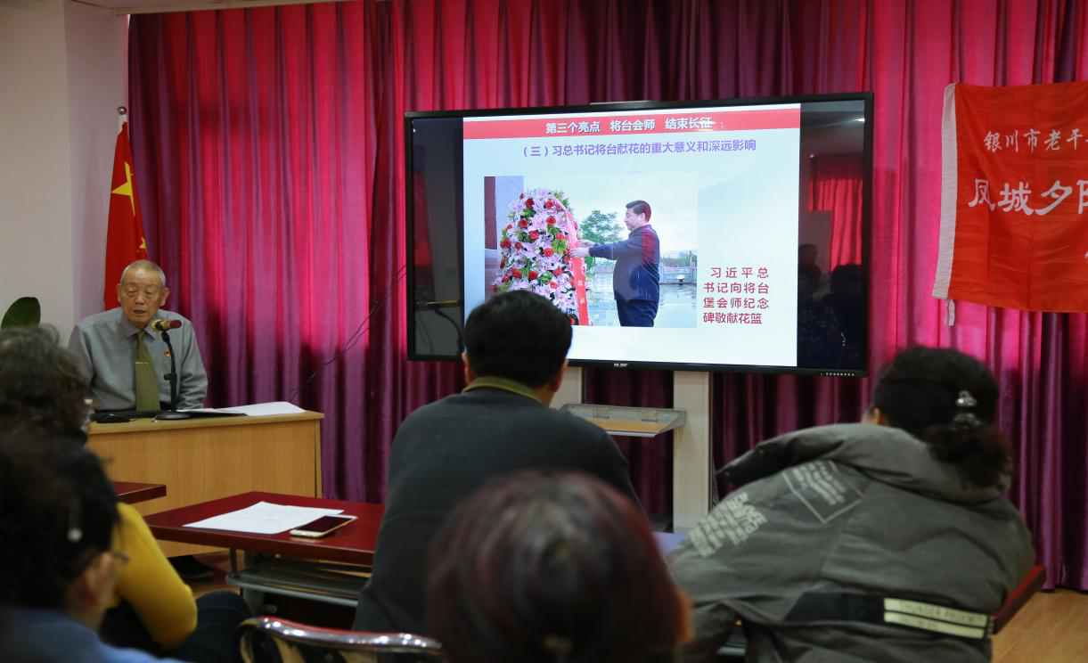 新年伊始,宁夏银川市老干部活动中心怡苑雅韵“趣缘型”党支部1月3日以“点单”形式,邀请宁夏塞上金秋宣讲团84岁的宁夏党史专家、军史专家邵予奋老先生,在活动中心党建展览室为老同志上了一堂别开生面的党史教育课。 邵老以极富感染力的语言,深情回顾了宁夏党史发展历程,传承红色基因。整个授课过程内容丰富,形式新颖,提问、朗诵、唱歌等环节不时穿插其中,全场互动,气氛十分热烈。尤其是在讲述任山河同志战斗情景时,更是让在座的观众无一不敬佩感动,全体自发起立向任山河烈士陵园(照片)默哀一分钟。 此次宣讲活动是银川市老干部活动中心打造党建联盟的重要形式,通过与各“趣缘型”党支部共同组织开展丰富多彩的共建联建活动,提高离退休党员干部的政治思想意识,从而进一步加强离退休干部党建联盟工作,为提升趣缘型支部建设起好步开好头。 |