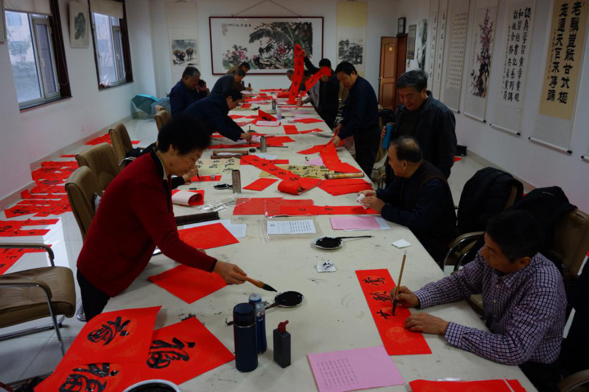 1月7日,滨州市老干部活动中心书画室内喜气洋洋,老干部书法爱好者们聚在一起写春联,迎新春,送祝福。窗外漫天飞雪,室内翰墨飘香,红红的春联,大大的福字,老干部们沐雨而来,踏雪而归,创作了100余幅春联,200余张福字,找到了久违的年味,送出了满满的祝福。 据悉,老干部们创作的这批春联、福字,将被全部送到市委老干部局派驻“第一书记”帮扶村,为基层群众送去新春问候,让乡亲们的大门红起来! 组织老干部写春联送祝福活动,市老干部活动中心已经连续搞了三年,成为每年的保留节目,老干部们说,写的春联比买的更灵动,更有人情味,乡亲们贴到家里更有年味!只要群众们需要,我们就一直写下去! |