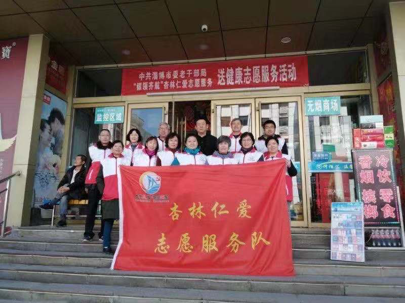 春节、新年期间,山东省淄博市老干部杏林仁爱志愿服务队,组织淄博市中心医院、淄博市中医院、淄博市第六医院、淄博市中西医结合医院的12名专家、教授,来到淄博仟佰汇购物广场,举行义诊服务,义务为群众健康查体、测血压、测血糖、做心电图、针灸、拔火罐、中医诊脉处方,治疗病人100多位,受到群众的欢迎。