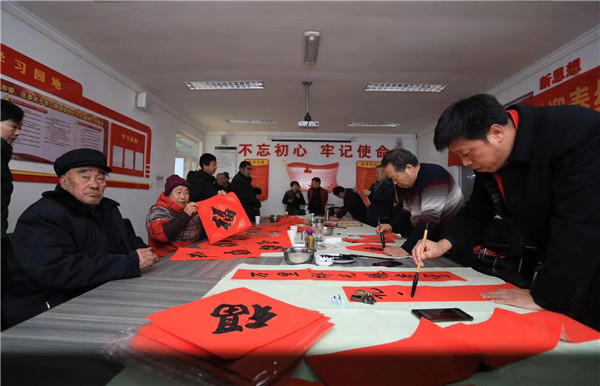 寒冬褪去,新春将来。1月9日,北京大兴老干部(老年)大学组织16名书法社骨干学员到青云店镇开展“迎春纳福”送文化下乡活动。 一大早,书法社成员们兵分三路,分别奔赴青云店镇三村二、四村和东孙村进行现场创作。各村委会人头攒动、书墨飘香。学员们挥毫泼墨,一幅幅饱满喜庆的福字、一对对吉祥如意的春联,增添了浓浓的喜庆氛围。仅半天时间,学员们共创作并送出春联、福字多达1000多幅,受到大家的热烈欢迎和一致赞扬。 写春联、贴春联是过年的传统习俗,它象征着祥和、幸福,承载着人们对新一年的祝福和祈盼。以书写春联、福字的方式“迎春纳福”,是老干部(老年)大学的特色活动之一,更是大学为大兴区居民准备的新春贺礼。多年来,大兴老干部(老年)大学不断搭建平台,积极引领学员服务社会,为大兴区精神文明建设发展持续发挥正能量。 |