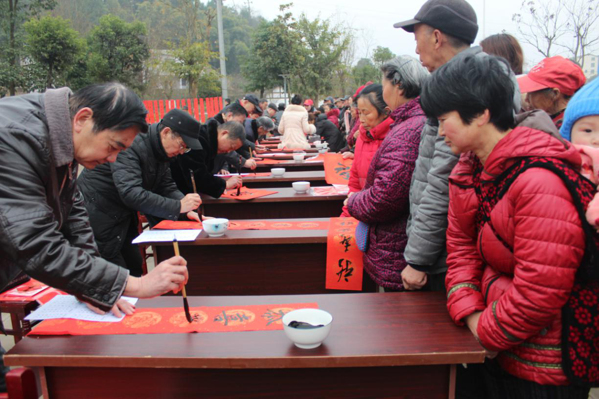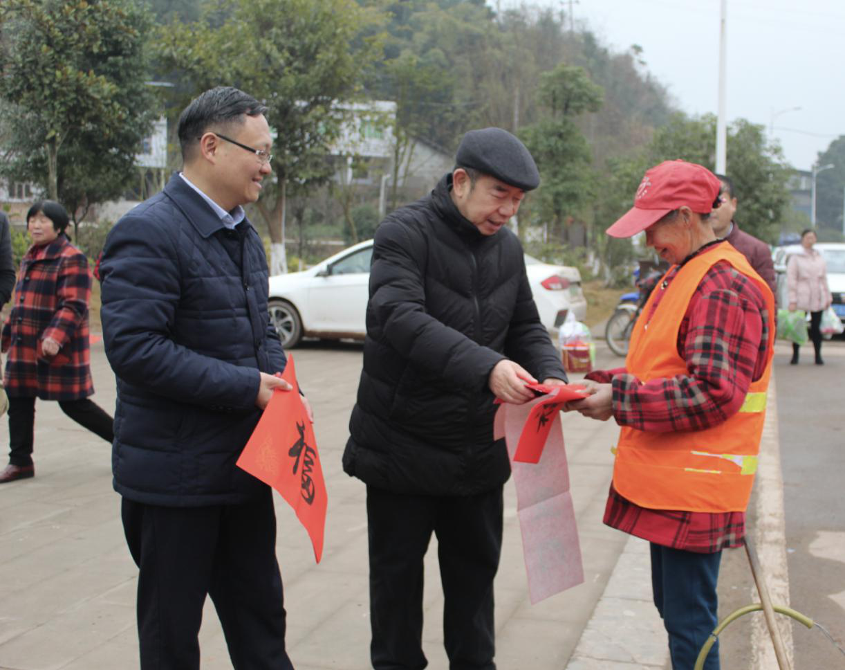 时值新春佳节之际,为进一步繁荣和活跃农村文化生活,传递老干部正能量,1月15日上午,四川遂宁市本级老干部和安居区老干部代表、市老年书画研究会书法家上官秀巍、赵洪武、夏先平等14名书法爱好者在安居区拦江镇举行了遂宁市老干部第十三届送春联下乡活动。 活动现场,书法爱好者们铺开大红对联宣纸,蘸足笔墨,书写新春的祝福。只见他们凝神聚气,笔走龙蛇,篆书、行书、楷书、隶书等多种字体跃然纸上。不一会,一幅幅散发着墨香与年味的大红对联与“福”字就展现在大家面前。活动现场翰墨飘香,到处都是火红喜庆的春联,为迎新春增添了浓浓的喜庆氛围,老百姓们拿到写满祝福和美好憧憬的春联连声道谢。 附近的居民和路过的行人,也都纷纷来到现场,向书法家们求写春联,此次活动共将1000余副春联的祝福送进千家万户。一位来求联的环卫工人激动的说:今天不仅求到了一副满意的对联,还感受到了党和政府在寒冷的冬日带来了浓浓的暖意。一位现场执勤的民警说:今天现场亲眼目睹了书法家们运笔挥毫的风采和气定神闲的洒脱,这些都是在字帖上感受不到的艺术魅力。 此次活动的开展,不仅在老干部和群众之间架起了一座连心桥,拉近了老干部与老百姓的距离,还把党的关怀和问候及时传达给基层群众,取得了“慰问一人、温暖一户、带动一片”的良好社会效果。 |