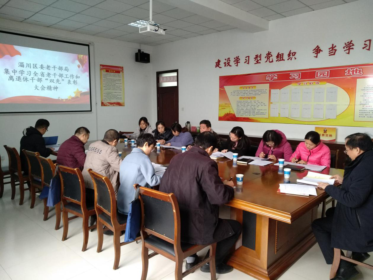 1月9-10日,全省离退休干部“双先”表彰大会和老干部局长会议召开后,淄博市淄川区积极组织学习活动,认真抓好会议精神的贯彻落实。 一是组织机关干部学习交流。区委老干部局组织全体机关干部,认真学习全省离退休干部“双先”表彰会议和老干部局长会上的领导讲话,并组织大家交流学习感想、认识和体会。同时,把会议精神和干好工作结合起来,认真学习领悟全省“双先”会议精神和老干部局长会议精神,谋划好明年的工作思路和措施,认真学习先进单位、先进个人的经验做法和先进事迹,进一步激发干事创业的激情和干劲。 二是组织党支部集中学习。1月13日下午,区委老干部局组织离退休干部联合党支部党员学习全省“双先”会议精神和老干部局长会议精神,17名离退休干部联合党支部党员参加会议,集中学习了全省离退休干部“双先”表彰会议和老干部局长会上的领导讲话,与会老干部逐一谈了感想、认识和打算。 三是及时推送和下发学习资料。通过全区老干部工作群及时推送了“双先”表彰会相关学习内容和报道信息,并要求各单位转发推送到老干部微信群,确保把会议精神传达到全区6000余名离退休干部。还专门印发了《离退休干部党组织学习活动规定项目参考流程》,将会议精神及时印发,要求各离退休干部党组织及时开展主题党日活动,组织广大离退休干部集中学习相关内容。 |