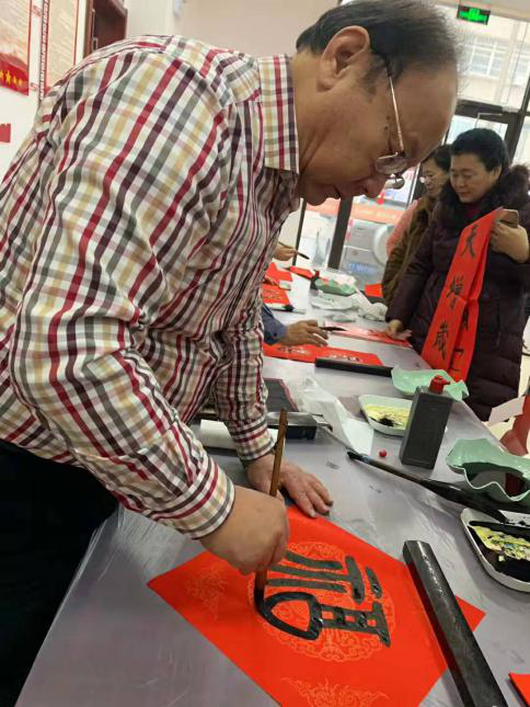 近日,烟台蓬莱市委组织部老干部二科联合老年大学举办“送春联进社区”活动。老年大学一行7人顶风冒雪,来到登州府第、南天门、京蓬等社区离退休人员党建工作站,为老年人送上春联福字和祝福。 “能拿到私人定制的春联,心里美美哒” 每到一处,老年大学书法绘画班教师都受到了社区老年人的热烈欢迎。 京蓬社区里,闻讯而来的老年人将书桌团团围住。有的当起“小书童”,帮忙拿纸、念词、晾作品;有的拿起手机,与亲朋好友实时分享;有的躲在角落悄声打电话,与家人商量春联词语…… 现场写春联 右一为夏起 在登州街道居住的退休干部夏起,就是其中一员。 得知老年大学教师要来,他提前准备好喜庆词语和红纸,一大早赶到社区排队。“今天来的,都是咱们蓬莱书法界有名气的人。过年时挂上他们写的春联,倍有面儿。”夏起喜气洋洋的说。 慕丰荣,是登州府第社区的居民。接过福字,她高兴的说:“刚上三楼,看见走廊上晾着红彤彤的福字,感觉特别有年味。”旁边的纪秀英接过话茬:“今年兆头好哩,在家门口就收到了福字,感谢老年大学啊。” 右二为慕丰荣,右三为纪秀英 “上社区为老年人写春联,很有意义” 从8:00到11:00,教师们写了300多幅春联及福字。虽然忙得额头沁出汗珠,却依然乐此不疲。 这次活动的带队人,是老干部活动中心主任。她介绍说,早上看见雪花,心里还打鼓,担心冰天雪地路况不好。结果,5位教师自带毛笔自己开车赶来,令人感动。 李愿基,现任老年大学教师。一上午的时间,他顾不上喝口水,福字、春联写个不停。无论在场居民提出用篆体、行楷书写,还是使用质地不同的纸张,他都是来者不拒,笑脸相迎。 老年大学教师方继愉在写春联时,恰巧遇到老年大学学员。师生相见分外亲切,学员赶紧上前请老师写幅“福”字,仔细卷好,高高兴兴带回家。 老年大学教师李愿基 老年大学教师方继愉 活动结束时,教师们普遍反映:虽然有些累,看见社区居民的笑脸,感觉都值得。 在南天门社区,碰见紫荆山街道工委组织委员。 她说:“举办这样活动,可以浓厚喜庆吉祥节日氛围,让老年人感受到社会温暖。为此,我们街道大力支持,特意安排社区做好各种准备,提供便利条件。” 右三为衣双 京蓬社区党群服务中心里,社区主任趁机满足了一个小心愿,请李愿基写了幅春联:党政牵头京蓬变样,干群协力土石成金。她打算,春节期间挂起来,让大家都来感受京蓬人昂扬向上的精气神。 “活动初衷,是想发挥老年大学的优势作用,为社区居民做点实事好事。”做为这次活动的参与者——市委组织部老干部二科负责人说:“没想到这次活动,这么火爆。以后,要多与老年大学联合举办类似的活动,丰富居民的精神文化生活。” |