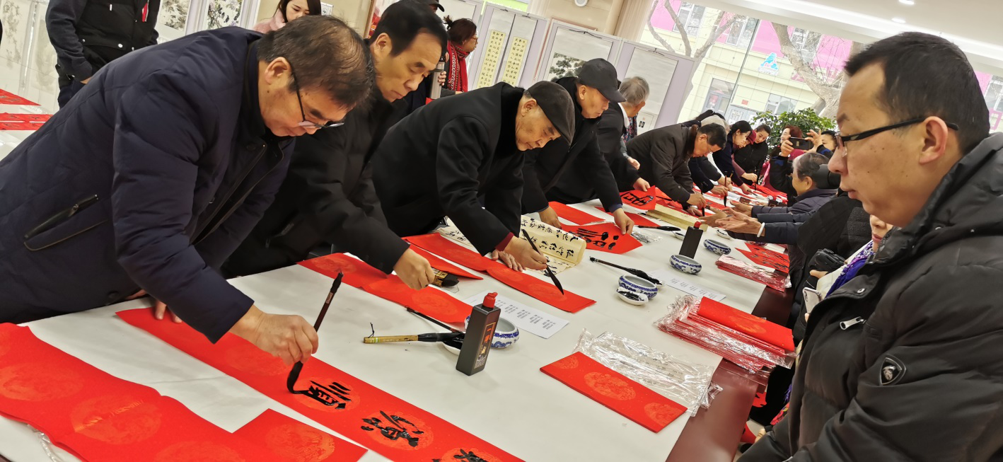 2020年1月13日上午,宁夏银川市老干部活动中心开展了“银耀银川”离退休干部迎新春书画展暨“送春联 送福字”志愿服务活动。此次书画展暨志愿服务活动旨在活跃离退休干部的业余文化生活,弘扬中华民族优秀传统文化,坚定文化自信。 出席此次书画展暨志愿服务活动开幕式的领导有原银川市委副书记郭用华、原银川市人大常委会副主任杨波、原银川市人大常委会副主任张秉忠、原银川市政协副主席、著名书法家田兵以及市委老干部局副局长王连丛。参加开幕式的艺术家有著名书法家吴如钢、著名画家纽希文、银川市书协副主席王玉堂、银川晚报书画院院长著名画家牛亚洲等。开幕式由活动中心主任杨春彦主持,活动在原银川市人大常委会副主任杨波的新年祝词中拉开了帷幕。 本次展览共展出书法美术作品40余幅,著名书画家也送来了祝贺作品。每幅作品都体现出了老同志们饱满的政治热情和良好的精神风貌,同时也展现出老同志们活到老、学到老的可贵精神,向当代年轻人树立了“老骥伏枥、壮心不已”的榜样,展现了当代老年人的最佳风采。书画展后书法家们为在场的老同志书写新春对联以及福字,书法家们用心用情书写出一幅幅字体不同的对联,每一个字都蕴藏着对大家最真切的新春祝福。活动现场气氛热烈,在场的每一位老同志都认真挑选着自己满意的对联,脸上洋溢着幸福的笑容。本次志愿服务活动,共书写对联260多幅,“福”字200多个,受到了在场老同志的一致好评。 |