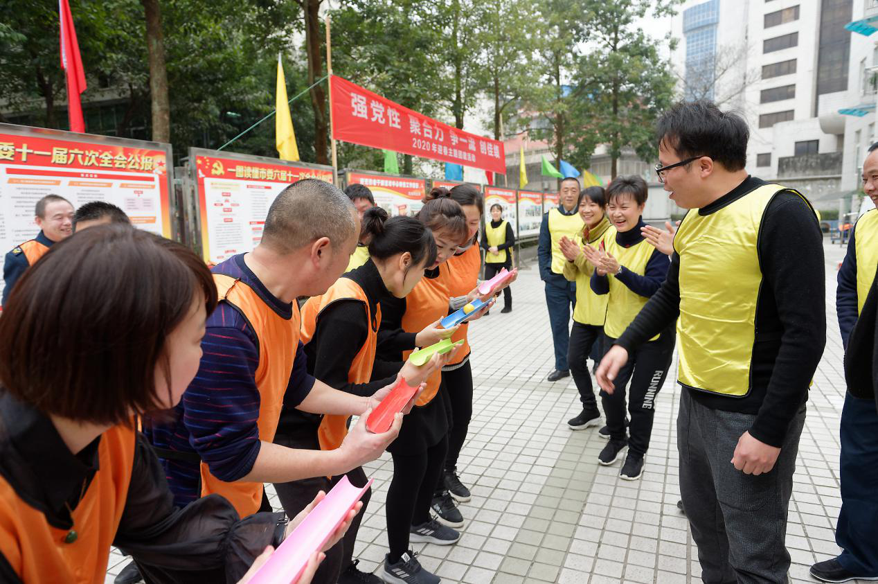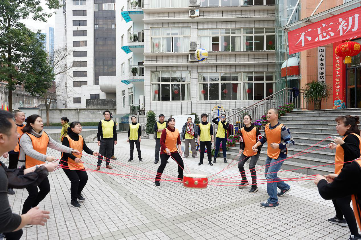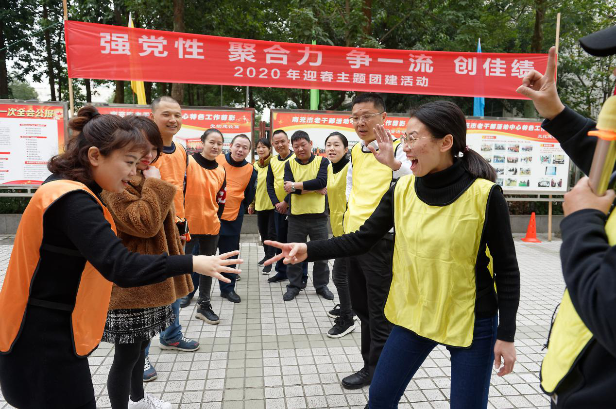 为学习宣传贯彻全国、全省“双先”表彰会及老干部局长会议精神,全面加强老干部工作队伍自身建设,锤炼坚强党性修养,丰富机关文化生活,进一步增强团队凝聚力、向心力和战斗力,以更加饱满的热情投身新时代老干部工作。1月20日,四川南充市老干部活动中心开展“强党性、聚合力,争一流、创佳绩”为主题的迎春团建活动,干部职工和服务人员、保安等20余人参加了活动。 主题活动在“中央和省、市重要会议、文件及党的老干部工作政策”知识抢答中拉开序幕,干部职工分成“初心”组和“使命”组两队,身穿黄色橙色背心,纷纷举手抢答,随着出题、抢答、纠错,记分牌上的比分你追我赶,交替上升,现场气氛活跃,大家深受教育。 “砖”心致志环节,两组队员依次脚踩经过软包装的砖头,在对方队员震耳欲聋“干扰”声中聚精会神地将三块砖头“搬运”到对面,对面队员又依样运过来,以最短时间完成任务获胜。 十六名黄橙队员按四男四女分成背靠背、脚套“链”条的两队,裁判一声令下,“移动长城”喊着口号,有节奏地向对面行进,橙队急于求成,配合不默契,步调快慢不一,你牵我绊,你阻我挡,乱成一窝粥,很快被黄队超越。 “乒”搏向上游戏,七名选手手托塑料凹槽,屏住呼吸,小心翼翼依次将一个乒乓球进行滚动接龙传递,考验耐心和稳定性,增强大局意识、配合意识和协作意识。 新时代战鼓催征,复兴梦鼓舞人心。“鼓”动人心中,八个队员双手牵引绳索上系着的大鼓,齐心协力击打跳跃的排球,随着鼓和排球不规则的跳动,大家一会步调乱了,一会排球掉下了,一会球飞的老高,混乱中,一些旁观的老干部也加入助威队伍,当起“教练”和“裁判”,老干部活动中心,白发黑发一起飞,加油声、欢笑声此起彼伏。 经过五个环节紧张激烈的拼争,“初心”和“使命”两队积分一致,不得不进行“剪刀石头布”猜拳决定胜负,团建主题活动在黄队“获胜”欢笑声中落下帷幕。 大家认为,这次活动,是老干部工作者“不忘初心、牢记使命”主题教育继续深化的常效长效之举,通过进一步熟悉党的路线方针特别是老干部工作政策应知应会和习近平关于老干部工作重要指示,以及娱乐性、趣味性强的团建活动锤炼,大家思想受到启迪,精神备受鼓舞,团队意识和责任意识、管理水平和应急能力进一步增强。大家纷纷表示,在以后的工作中,将用行动诠释红心向党、不负韶华良好风范,努力围绕中心、服务大局,为实现中华民族伟大复兴贡献积极老干力量。 |
