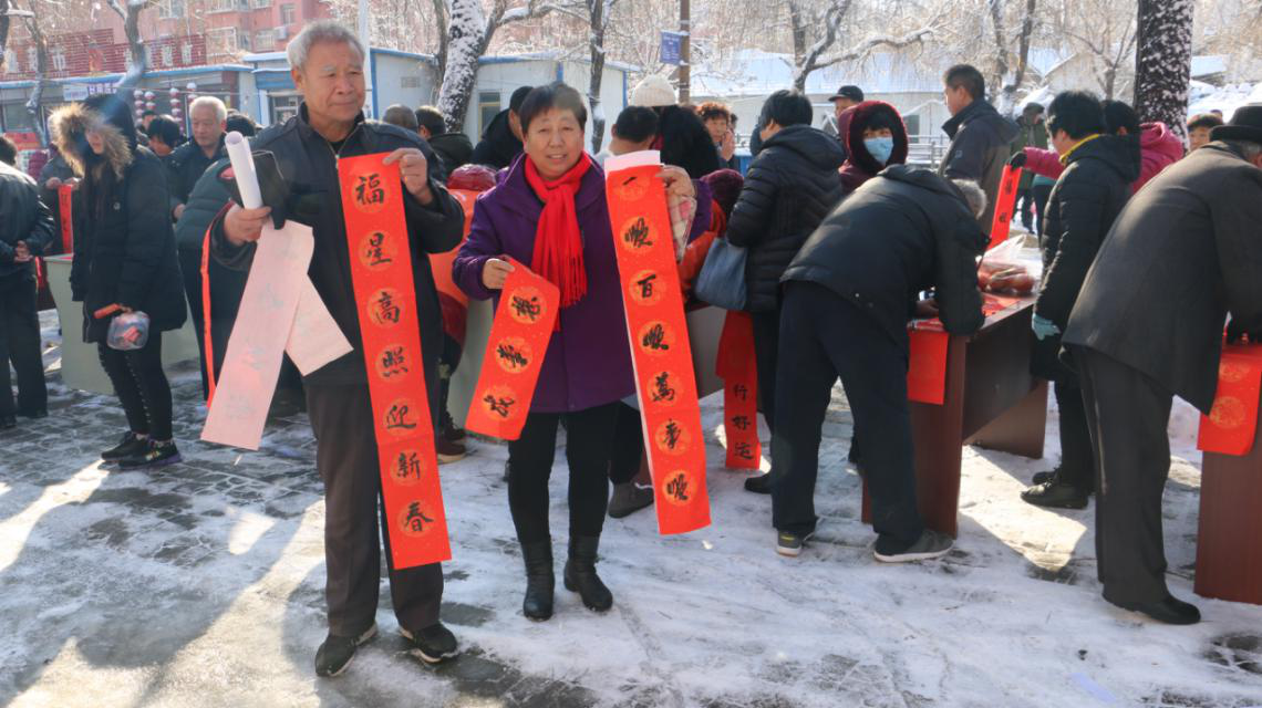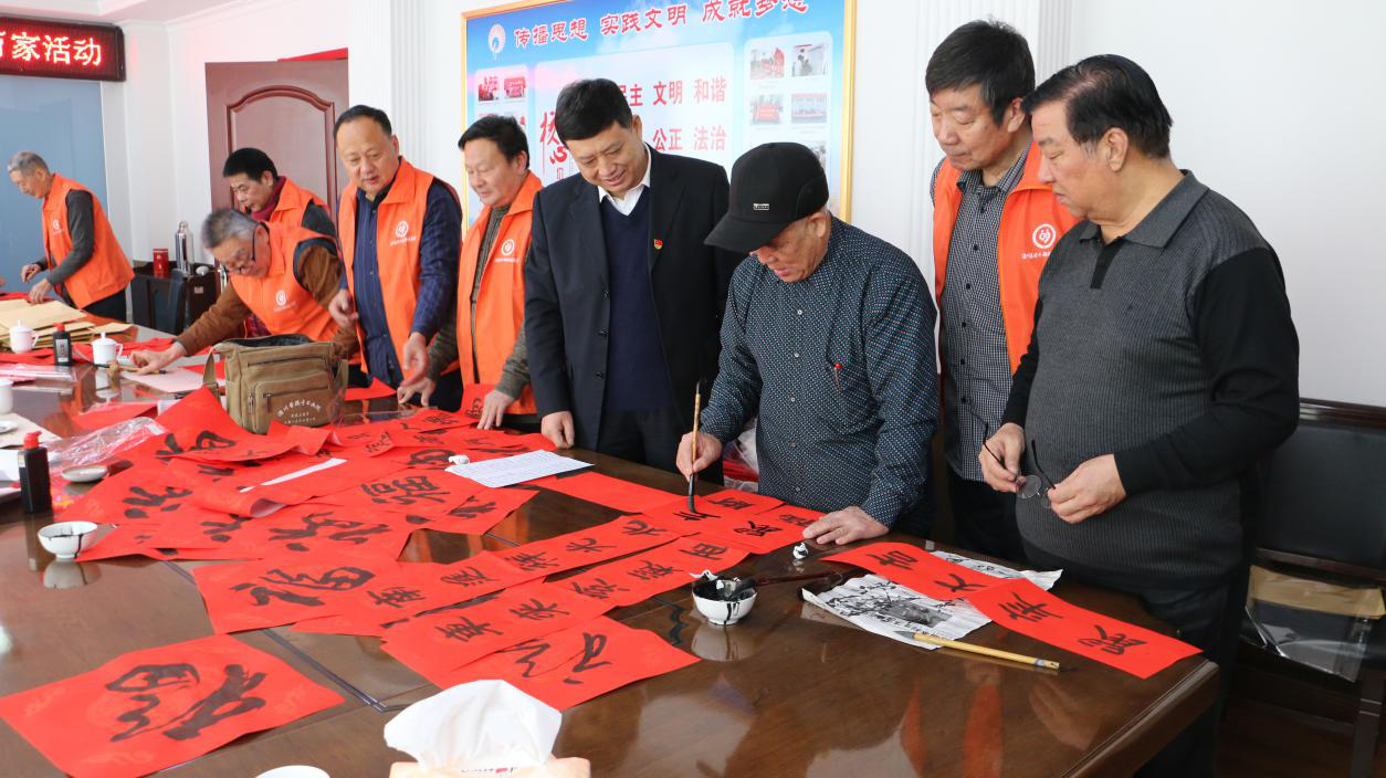 为了营造欢乐祥和、健康向上的节日氛围,进入腊月以来,淄川区组织区老年书画学会老干部志愿者开展为群众“写春联、送祝福、进万家”活动。 此次活动全部由老干部组成,并成立了15个小分队,由党员担任小分队队长,采取集中书写分头赠送、现场书写当面赠送的形式,赶大集、进社区、进机关、进企业、进敬老院,将党的好政策、群众对美好生活的向往融入象征美好和喜庆的春联中,传递到每家每户的心中。 截止目前,已累计为群众写送春联3万余幅,赠送“福寿”字3.3万余个,参加活动老干部达到1300余人次,受赠单位90余个,受赠群众3.5万余户。活动现场群众们争相领取春联,并纷纷表示,春联内容喜庆祥和、鼓气提神,春联往家里一贴,年味十足,感觉特别光荣与自豪,一定不忘党恩,用勤劳的双手创造幸福美好生活。