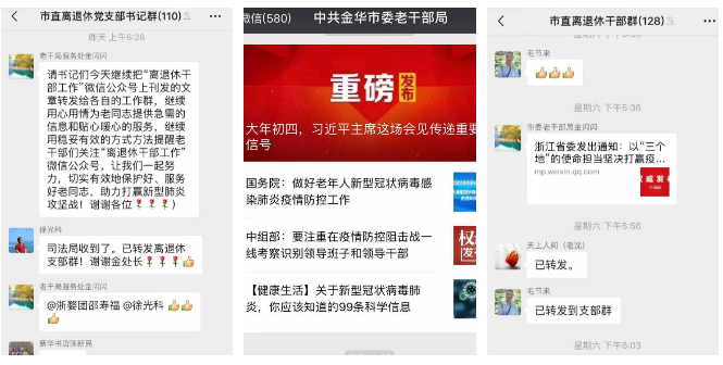 疫情就是命令,防控就是责任。自新型冠状病毒感染的肺炎疫情发生以来,浙江金华市委老干部局积极响应、多措并举、上下联动、坚定信心,做到守土有责、守土负责、守土尽责,认真贯彻落实上级有关工作部署,精心织好“四张网”,助力坚决打赢疫情防控阻击战。 01织严“责任网”,构建上下联动的防控链条 局主要领导高度重视疫情防控工作,成立疫情防控工作领导小组,带领全体党员干部扛起应对疫情的政治责任。从大年初一开始,每天过问局疫情防控工作,时刻关注老干部身体状况,要求各家医院做好服务管理,尽量避免老干部外出,确保人员安全。通过微信、电话等方式,向居家老干部宣传防控知识,做好自我防控。实时布置具体任务,要求全市各级老干部工作部门充分认识当前疫情防控形势的严峻性、复杂性,及时将中央、省委和市委的重要指示精神传达到各级离退休干部党支部群。同时充分发挥党员先锋模范作用,强化正面引导,积极主动作为,支持和帮助政府、患者、医生等抗击疫情,奉献爱心。 结合工作实际,制定《金华老年大学和老干部活动园区新型冠状病毒感染的肺炎疫情防控工作方案》,从组织领导、人员管理、自身防护、知识宣传等方面做出明确要求,构筑群防群治抵御疫情的严密防线。要求全市各级老年大学延期开学,活动中心等老干部活动场所暂停对外开放。 02织密“防护网”,科学有序开展防控工作 加强节日期间值班力量,安排值班领导和工作人员上岗执勤,手机保持24小时畅通。严格管理办公和老干部学习、活动场所,每天进行清洁、消毒、通风,营造安全的工作环境。建立防控疫情“日报告”制度,全面做好返岗人员信息统计,严密排查本人及其共同生活人员是否1月15日后与确诊或疑似病例有密切接触、是否去过湖北以及其他重点地区,每日下午5点前上报市疫情防控组。 03织好“关爱网”,人性化服务暖心贴心 要求各处室人员时刻保持警惕,做好疫情防范工作。密切关注工作人员身体生活状况,为办公场所购置消毒用品,积极与社区协调沟通,外省返金隔离人员由社区人员看管,通过电话、微信等送去温馨提醒,叮嘱大家注意防寒保暖,确保个人身体健康。 金华老年大学工作人员通过电话、班级微信群等多种方式,全面了解老干部外出路径、身体状况和精神情况,制作网络问卷,做好出入湖北省等高危地区老同志的排摸调查,并做好解疑释惑和理顺情绪工作。 04织牢“宣传网”,引导老干部为抗击疫情增添正能量 用好信息化手段,通过局微信公众号,及时向全市离退休干部发出温馨提醒,要求增强政治意识、卫生意识、防范意识和责任意识,不信谣不传谣不造谣,不随意传播非官方渠道发布的疫情相关信息,不为这场疫情防控阻击战添堵添乱。金华老年大学通过网络学院,利用网上视频课件引导广大学员进行学习。 通过老干部工作群、离退休干部群、县(市、区)群、老年大学班级工作群等,及时把习近平总书记重要指示、中央和省委、市委的重要精神传达到每一个离退休干部党组织、每一名离退休干部,引导老干部在在做好自身防护的条件下,积极支持,力所能及参与防控工作,共同打赢这场疫情防控战。 鼓励老干部充分发挥优势专长,在家中自创自演歌曲、戏曲、快板、金华道情,用书法、绘画、诗歌等表达抗击疫情的决心和毅力,并通过微信、网络、朋友圈、QQ群发布,宣传防控知识、净化舆论环境、凝聚防控合力。 |