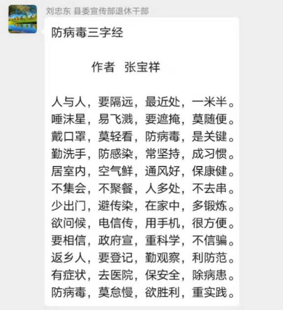 2019年末,新冠肺炎疫情来势汹汹,让本该热热闹闹的鼠年变得满目疮痍。面对疫情,老干部能做些什么?如何让自己“宅”在家里更有意义呢? “一口饭做军粮,一块布做军装,最后一个儿子送战场”,八十年前,沂蒙山区“水乳交融、生死与共”的鱼水情在淄博沂源县再次上演。 爱心捐赠 支援战“疫”一线 全县广大老干部、老党员慷慨解囊,支持湖北疫情防控。“人民楷模”朱彦夫从自己的抚恤金中拿出1万元捐给灾区,并用残肢抱笔写下“我们一定胜利”。全国离退休干部先进集体“春松老年志愿者服务队”350余名志愿者募捐43000元,沂源县税务局89岁离休干部左文平捐款10000元,全国离退休干部先进个人李振华捐款5000元,县审计局12名退休干部捐款2800元,张家坡镇退休干部徐平田捐款1000元,总工会退休干部任纪航交纳大额党费1000元,县公安局退休干部王树德捐款1000元,并支持女儿王丽奔赴武汉战“疫”一线……截至2月11日,全县离退休干部党员累计捐款10万余元。 以笔战“疫” 文援“疫”线 沂源县广大离退休干部以大美之艺、大爱之心投入到这场防控疫情中来,用文艺创作的形式贡献自己的力量,用艺术作品激励群众斗志、坚定防控必胜的信心。县文化馆原馆长张宝祥根据疫情防控知识要点,自编了防病毒“三字经”,用最接地气的语言将应对疫情的要点传递给每个老干部、每个群众。县老年诗词学会组织会员创作诗词作品40余首,县总工会退休干部任纪航创作2首抗疫歌曲,中庄镇退休干部田元吉创作4首朗朗上口的快板书,县老年大学教师魏君文创作多幅战“疫”漫画……目前,全县离退休干部创作文艺作品120余件,他们正用艺术的力量,为武汉加油!为中国加油! 敢于担当发声 拒绝网络谣言 疫情防控期间,全县广大老同志积极学习使用网络媒体,主动发声,传递正能量,努力做好防范疫情的宣传员。在微信、今日头条、抖音等新媒体平台积极转发官方疫情通报、疫情防范等正面宣传贴文,引导老同志不要恐慌,科学防范。同时,加大对老同志微信群的管理维护,引导老同志以官方消息为准,不造谣、不信谣、不传谣。目前转发防范帖文265篇,警示老同志23人次,与老同志互动交流511人次。 |