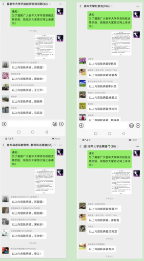 新冠肺炎疫情发生以来,为了保证老年人安然度过疫情防控的特殊时期,济宁金乡县老年大学在停开实体课程的同时,迅速组织广大老年学员开展了系列网络活动,以此丰富学员居家抗疫生活,发挥思想政治建设主阵地作用。 开特色网课正面宣传 疫情发生以来,针对老年群体信息来源单一、辨识信息真伪能力较弱的实际,老年大学在县委老干部局的指导下,及时开辟抗疫专题网课,指定政治素养高、舆论工作经验丰富的党员担任线上老师,通过微信公众号、微信群等媒介开办多堂“防治新冠肺炎普及课”“疫情防控辟谣课”,及时转发官方媒体权威发布、曝光反面典型、推送辟谣信息等内容宣传抗疫知识,有效地打消了老年人疑虑,提高了学员们的思想免疫力。 签在线承诺倡树风气 随着防疫形势不断变化,为推动小区封闭管控、外来人员信息上报等防疫政策落实,安排专人在老年大学学员微信群里详细解读文件通告精神,并组织老年大学学员在线签订《疫情防控承诺书》,活动发起当天就有200多名学员积极响应。通过线上承诺,在老年群体中倡树了支持防疫措施并带动全体家庭成员参与居家抗疫的风气。 办线上活动聚正能量 为使老年人在居家抗疫中保持平稳情绪,县委老干部局联合县工会、县妇联邀请专业心理咨询师通过电话、微信群开展“线上心理防疫”,共疏导心理咨询10余例;同时,推出系列线上才艺展示活动,与济宁老年大学、任城区老年大学、威海盛泉孝爱老年大学周密筹划,分别于2月6日和2月9日在济宁威海两地四校的老年大学中联合开展“声音连线、空中舞台”和“艺术传情、抗疫献爱”两个抗疫专题在线展示赛,引导广大学员围绕抗疫正能量发挥特长,踊跃创作诗词、曲艺和书法、绘画、剪纸等作品予以展示。展示赛开展以来,广大老年学员积极创作踊跃投稿,截止目前,“声音连线、空中舞台”线上展示赛第二轮选出的58篇诗词、曲艺作品网络投票已接近尾声,后台收到有效投票近9000票;“艺术传情、抗疫献爱”书法、绘画、剪纸展示赛收到投稿作品近200余幅,不日将组织专家对排名前100的作品进行网上评选。通过以上专题活动,安抚了学员的焦虑情绪,调动了学员声援抗疫的热情,在老年群体中打造了发挥正能量的抗疫氛围。 推空中直播丰富载体 加快与盛泉孝爱老年大学开展深度合作,探索创新网络办学载体,根据疫情实际,携手推动开通了空中直播课堂,搭建起可以随时随地无边界学习的网络平台,整合济宁威海两地的书法大师、播音名嘴、声乐专家等优质师资,打造了书法、朗诵、声乐、绘画、瑜伽等精品课程。通过扫码进群公益直播授课的形式,可以让老年学员摆脱空间、出行等因素限制,宅家就能接受名师授课。空中直播课堂目前进入最后的筹备测试阶段,第一期试播课程启动当天,书法、声乐等课程500人的微信群不到1小时就已加满,当天就有3000余名学员申请入群。通过空中直播课堂,极大丰富了老年大学的办学载体,方便了广大老年学员的学习生活,构筑起线上线下老年大学两大阵地。 通过开展以上多种线上活动,金乡县老年大学有力地统一了老年朋友的思想认识、安抚了情绪、汇集了正能量,有力的配合了全县疫情防控中心大局工作,增强了老年大学思想政治建设主阵地的凝聚力。 |