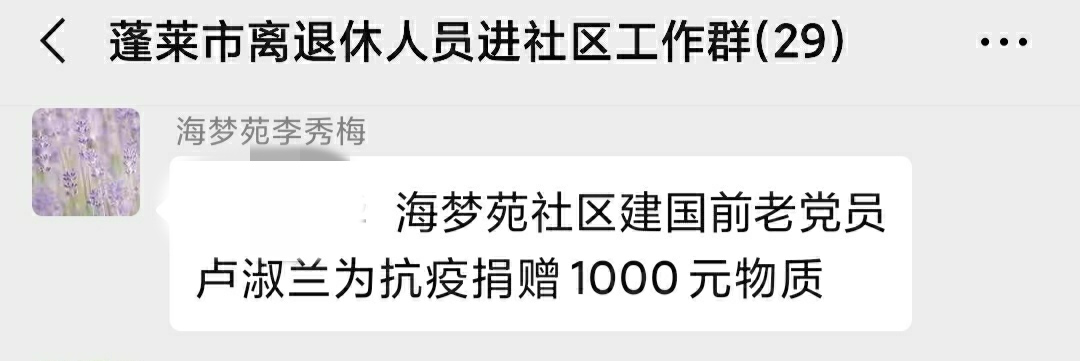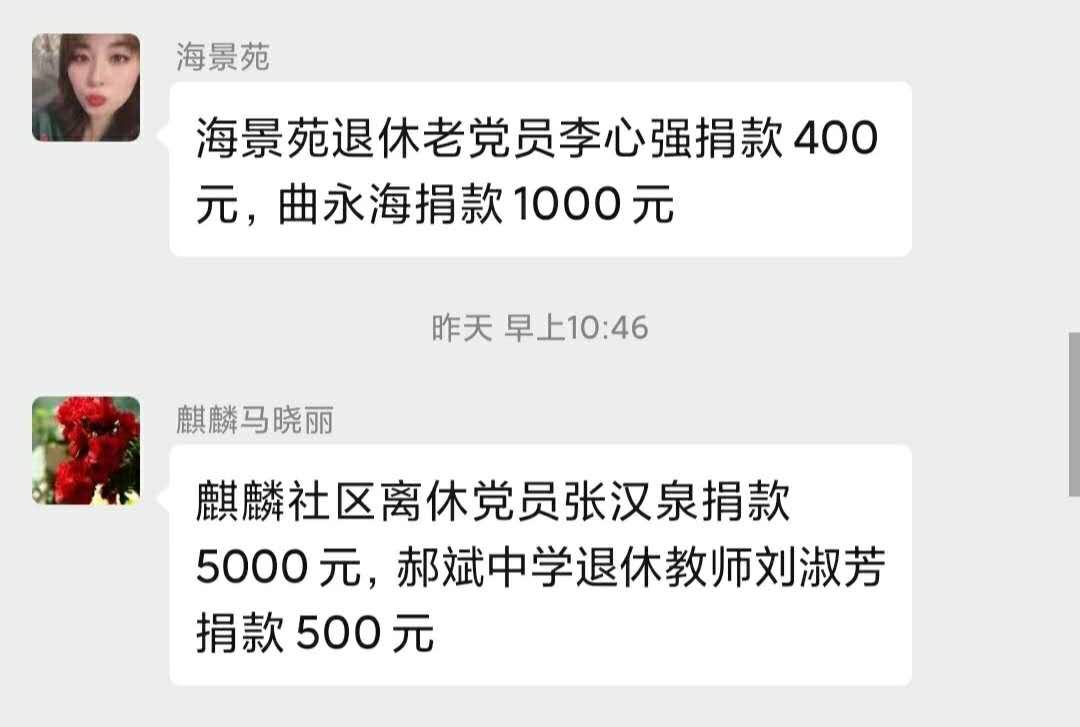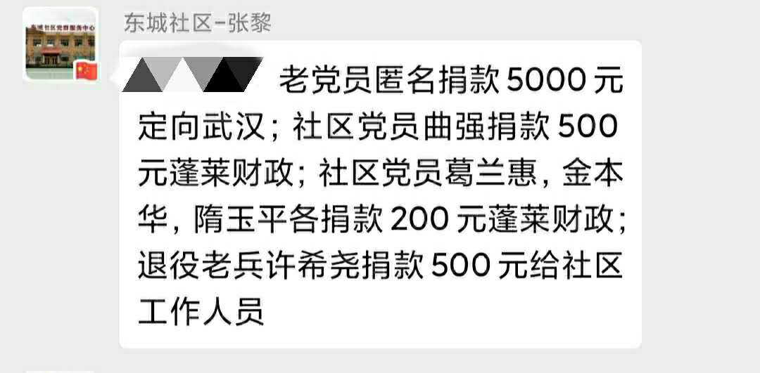 面对严峻的新冠肺炎疫情,烟台蓬莱市社区离退休人员党建工作站的老人们纷纷自发捐款奉献爱心,为打赢疫情防控阻击战做出力所能及的贡献。 老党员的匿名捐款 近日,一位80多岁的老人来到东城社区党建工作站,向社区主任说明了来意,想委托社区帮助捐款助力抗疫。 “作为一名老党员,关键时期就得站出来。”老人神情坚定的说。随之,从怀里掏出5000元,嘱咐工作人员:“至于捐款,匿名就好了。我觉得,这是一个老共产党员的本份。” 留下爱心款,老人匆匆的走了。 接过带有老人体温的爱心款,社区立即派人送到有关部门,完成老人的心愿。社区主任表示:我们要传承好老党员心系国家不计名利的精神,践行初心使命,打赢这场疫情防控阻击战。 离休干部的心意 2月23日上午,麒麟社区党建工作站的张汉泉,在社区工作人员陪同下,到市慈善总会捐出抗疫爱心款5000元。 张汉泉,今年87岁,1947年入伍,参加过解放战争,是市人民医院的离休干部。去年他到社区工作站报到,积极参加各类老年人活动,处处起到模范带头作用。 前不久,他因病住院治疗,后来居家休养。康复期间,时刻关注疫情变化,了解到党和国家及蓬莱市为抗疫作出的努力。痊愈后马上联系工作站负责人,为抗疫捐款。 问及捐款缘由,他说:“离休20多年了,党和国家的关爱让我安度晚年。现在疫情当前,作为一名离休干部,理应尽心出力。” 图中左一为张汉泉 老人们的善举 连日来,“离退休人员进社区”微信工作群里,各党建工作站老人们为抗疫捐款的信息此起彼伏。 “海景苑社区曲永海捐款1000元,李心强捐款400元。” “海梦苑社区卢淑兰捐资1000元。” “福乐园社区陈丽华捐款1000元。” …… 面对一笔笔捐款,各社区负责人颇有感慨。 有的老人年事已高,不方便出门,打电话让子女代交;有的老人不会微信转帐,亲自将现金交到社区工作人员手中;有的老人身在外地,通过微信转来捐款。 “老人们积极发挥作用,自发为抗疫做贡献。我们社区工作者要提供优质服务,让他们安度幸福晚年。”各社区负责人普遍表示。 |