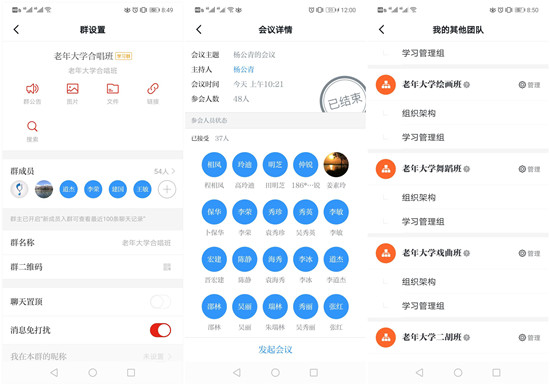 “能在网络上和杨老师、同学们学习和互动,这个办法真好!”山东省菏泽市曹县老年大学学员卜保华利用“学习强国”学习平台中的智能电话高兴地和老年大学工作人员交流。经过前期精心准备,近日,曹县老年大学合唱班的第一堂课如期开班了。 为落实切实做好新冠肺炎疫情防控,假期延迟老年大学教学工作,曹县老年大学以专业班级为单位,把“学习强国”学习平台智能电话功能中的视频通话作为老年大学开展教育、教学的主阵地。以合唱班为试点,班级老师成为辅导员,一对一网上辅导学员下载和使用该软件。经过2天的辅导,合唱班54位学员全部掌握“学习强国”操作流程并加入学习组织。 老年大学合唱班学员全体加入强国组织 在“学习强国”视频课堂上学员们像平时在教室里一样跟钢琴伴奏练唱歌、纠正发音和咬字吐字,还能逐一进行检查视唱作业。老年大学学员王又兰表示,在疫情防控期间,老师采取网络授课,这样的教学方式很好,大家又学会了一项新技能。 课下学员通过“学习强国群”交流学习要点,老师点评学员提交的作业,学员的学习积极性和学习效果有增无减,既安心在家隔离,又不耽误学习,还能丰富精神文化生活。学习平台视频会议变教学“云课堂”,视频教学的形式广受欢迎。 曹县老年大学教师杨公青老师通过视频会议为学员上课 在“合唱班”成功试点基础上,曹县老年大学将陆续开启二胡班、绘画班、书法班等其他7个班。 |