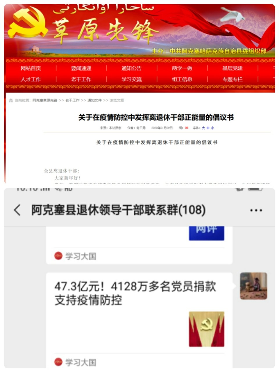 生命重于泰山,疫情就是命令、防控就是责任,为打赢疫情防控阻击战,阿克塞县委组织部老干部活动中心坚持以“四个不停步”用心用情做好疫情防控期间退休老干部的思想引导和精准服务工作,持续发力助力疫情防控工作。 防控宣传不停步。通过阿克塞县退休干部联系群、草原先锋网专栏等媒介及时传达县委、县政府关于疫情防控的新指示、新举措、新知识,号召退休老干部减少外出活动自主防控、做好个人防控和发挥余热助力防控,进一步增强退休老干部自我保护意识和能力。 助老服务不停步。积极应对,立即行动。中心第一时间发出公告,暂停开放活动场所,取消一切活动,加强应急值守,强化日常管理,引导老同志尽量少出门、不出门、不聚餐、不信谣、不传谣,勤洗手、勤消毒、戴口罩,做好个人防护和家庭防护,实行日报告制度,精准掌握每日动态,确保情况明、能掌控。同时加强与各社区联系,掌握社区疫情,实时电话联系退休老干部及其家人,力所能及地提供帮助。 党员巡逻队不停步。根据疫情防控需要,活动中心在职党员主动配合社区承担辖区内的疫情防控相关工作。协助社区开展防疫宣传和安全劝导等工作,在防疫一线践行党员的初心和使命,以自己的行动来保护社区群众的生命安全和身体健康。 正能引导不停步。及时挖掘报道老干部、老党员积极参与疫情防控的经验做法和先进事迹,引导全县老同志在做好个人防护的同时,积极参与疫情防控工作,争做“传播正能量”的先锋模范。荣获“全国离退休干部先进个人”的退休老干部崔广茂同志,从疫情防控工作一开始,就主动到社区报到参与值班巡逻。他说:“最近在电视、手机微信里看到防疫一线工作人员忙碌的身影,我十分感动。当前疫情防控形势严峻,作为一名党员、退休干部,我要求到社区巡逻执勤,为疫情防控贡献自己的一份力量。”这一事迹被宣传之后,广大退休老干部积极响应,主动为疫情防控工作传递正能量,利用自身优势投身疫情防控工作中。他们为防控疫情带头募捐、爱心捐款、为坚守抗击疫情一线的工作人员送去慰问品和“暖心餐”、志愿到社区参与值班和巡逻劝导、录制诗词朗诵视频、积极参与老年大学居家学习活动,转发各类学习资料和疫情防控知识,用实际行动表达战胜疫情的信心和决心等等事迹。无论是防疫一线,还是默默坚守的后方,每一位退休老党员、老干部都在以不同方式承担着自己的职责和使命,奉献着自己的一份力量。 |