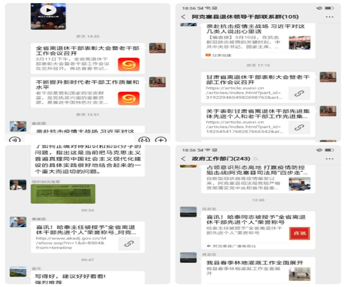 3月11日下午,全省离退休干部表彰大会暨老干部工作会议召开后,县委组织部老干部活动中心紧密结合本地实际,采取多种形式,及时抓好会议精神的学习贯彻。 一是及时传达学习。老干部活动中心于3月13日上午组织召开中心干部职工会议,进一步传达学习全省离退休干部表彰大会和省市老干部工作会议精神,对贯彻落实会议精神作了明确分工,要求办公室结合实际,认真研究,提出贯彻落实会议精神的各项具体措施,为召开全县老干工作会议奠定基础,并修改完善了全县2020年老干工作要点,审核通过后印发。 二是及时宣传先进典型。老干部活动中心通过微信公众号、微信群、QQ群、阿克塞县草原先锋网、政府工作部门联系群等网络平台,认真学习贯彻全省离退休表彰大会暨老干部工作会议精神,广泛宣传全国、全省“离退休干部先进个人”典型事迹,充分发挥获奖老干部示范带动作用,营造学先进、赶先进、争当先进的浓厚氛围。