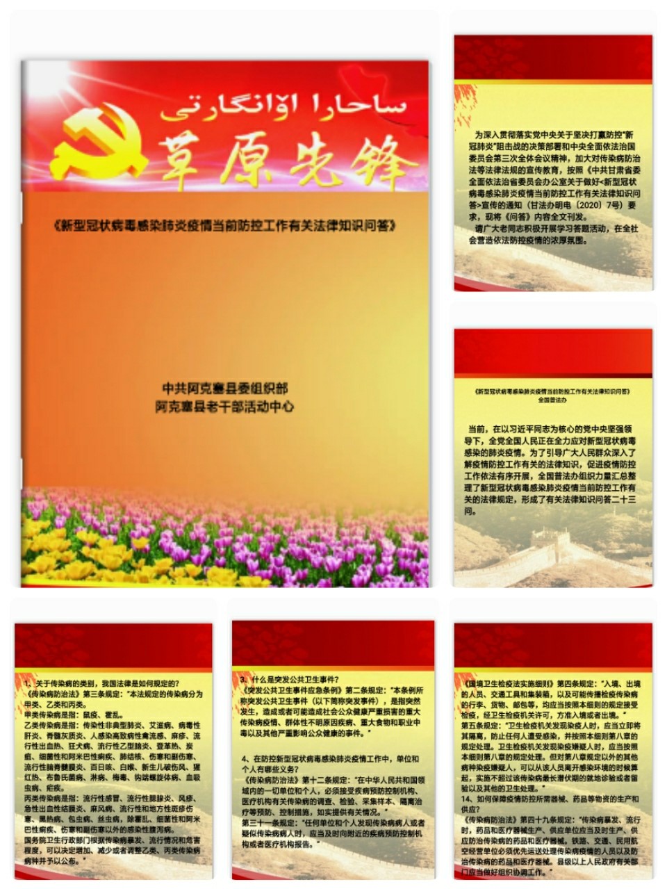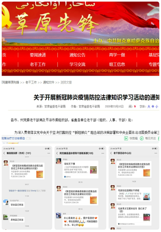 为落实甘肃省老干部局下发的《关于开展新冠肺炎疫情防控法律知识学习活动》的通知要求,引导广大退休老干部深入了解防疫工作相关法律知识,加大对传染病防治法等法律法规的宣传教育,组织广大老同志和老干部工作者,认真开展学习,在全社会营造依法防控疫情的浓厚氛围。近日,阿克塞县委组织部老干部活动中心开展了新冠肺炎疫情防控法律知识学习活动。 此次活动以制作电子书,利用网络媒体平台推广宣传的方式,针对疫情防控工作中存在的突出问题和大家关注的热点问题,围绕"不如实报备、违规外出、哄抬物价、造谣传谣"等方面深入宣传了传染病防治法、突发事件应对法、陆生野生动物保护法、国境卫生检疫法、突发公共卫生事件应急条例等法律法规,以及刑法、治安管理处罚法等相关法律条例。 此次活动充分发挥了网络学习平台载体作用,及时为退休老干部普及了新冠肺炎防疫相关法律知识,提高退休老干部疫情防范意识,对疫情防控知识和相关法律法规政策宣传起到正向积极作用,为疫情防控工作提供法治保障和良好舆论环境。 |