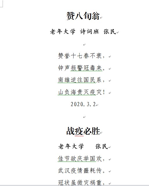 针对一些离退休干部年老体弱,无法像医生、民警、社区干部等一线抗疫工作者一样,到疫情一线当“先锋兵”等实际,充分发挥离退休干部的政治优势、经验优势和威望优势,举办“为武汉加油,为中国加油”主题征文活动,积极动员,号召广大离退休干部拿起“笔杆子”,以笔为武器抗击疫情。有的老同志手绘钟南山院士、李兰娟院士抗疫漫画,有的老同志创作抗疫诗词,有的老同志创作抗疫书法等等,通过文化艺术方式,为武汉加油、为湖北加油、为中国加油,为战斗在疫情一线的英雄们点赞,汇聚了坚决打赢疫情防控阻击战的磅礴力量。目前,全市离退休干部创作抗疫诗词书画作品2000余篇,贡献了离退休干部防疫抗疫的智慧和经验。 |