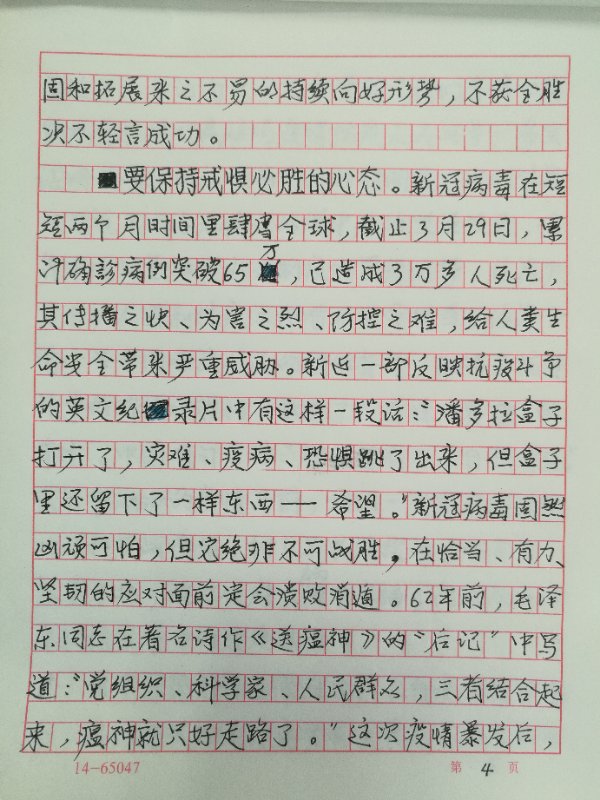 鼠年初始,尽管有些春寒料峭,但盎然春意依旧如期而至,“迟日江山丽,春风花草香”。 最近一段时间,每每打开电视、翻开报纸,总有一些令人欣慰的消息扑面而来:越来越多的省份实现疫情“清零”,以武汉为主战场的全国本土疫情传播基本阻断;武汉“方舱”医院收官闭舱,驰援湖北的医护人员陆续凯旋而归;各地相继复工复产,一些公共消费场所开始开禁迎客……。同时,也不时看到另一些令人揪心的报道:新冠肺炎在全球多点爆发蔓延,加剧世界疫情危机,不少省份累累出现国外输入病例……整个疫情形势可谓喜忧参半。 习近平总书记3月18日在中央政治局常委会议上强调:“要清醒看到国内外疫情形势的复杂性和严峻性,毫不放松地抓紧抓实抓细各项防疫工作,决不能让来之不易的疫情防控持续向好形势发生逆转。”境由心造,事在人为。贯彻落实习近平总书记的重要指示,夺取疫情防控之战全面胜利,必须明势正心,时刻保持应对疫情的良好心态。 要保持慎终如始的心态。疫情爆发以来的两个月,可以说是中国人民印象中最漫长、最忧心的一段时间。经过举国上下英勇奋战,尽管我们付出了惨重代价和巨大牺牲,但终于迎来了疫情防控形势的巨大反转和胜利曙光,全国人民为此欢欣鼓舞。看到疫情报道中的“零增长”数字,看到一些地方防控响应级别的调整下降,有些同志不由产生了麻痹松懈、甚至厌战情绪,认为“可以摘掉口罩松松气,用不着再那么兴师动众、严防死守了”。这种心理状态,对决胜疫情是非常有害的。我们虽然初战告捷、取得了抗击疫情的阶段性胜利,但目前的疫情形势依然严峻复杂。“零增长”不等于“零风险”。随着复工复学和人员流动机会的增多,极易引起新一波病毒传播扩散;全球疫情日趋严峻,使我国防控压力陡然加重,稍有不慎就会出现疫情形势恶化反弹。历史一再告诉我们,“慎终如始,则无败事”。疫情未了,灾难未已,我们就不能掉以轻心,要真正把思想统一到党中央关于疫情形势的科学判断上来,不麻痹、不厌战、不松劲,按照“外防输入、内防反弹”的总体防控策略,再接再厉,善作善成,毫不懈怠地做好各项防控工作,不断巩固和拓展来之不易的持续向好形势,不获全胜绝不轻言成功。 要保持戒惧必胜的心态。新冠病毒在短短两个月时间里肆虐全球,截止3月29日,累计确诊突破65万,已造成3万多人死亡,其传播之快、为害之烈、防控之难,给人类生命安全带来严重威胁。新近一部反映抗疫斗争的英文纪录片中有这样一段话:“潘多拉盒子打开了,灾难、疫病、恐惧跳了出来,但盒子里还留下了一样东西----希望。”新冠病毒固然凶顽可怕,但它绝非不可战胜,在恰当、有力、坚韧的应对面前定会溃败消遁。62年前,毛泽东同志在著名诗作《送瘟神》的“后记”中写道:“党组织、科学家、人民群众,三者结合起来,瘟神就只好走路了。”这次疫情爆发后,习近平总书记向世人庄重宣示:“我们有信心有能力有把握打赢这场疫情防控人民战争!”事实证明的确如此。在两个月的时间里,我们依靠以习近平同志为核心的党中央的坚强领导,依靠中国特色社会主义制度的显著优势,依靠广大医护人员和抗疫工作者的使命担当,依靠全党全军全国各族人民的团结奋斗,取得了抗疫斗争的阶段性胜利,创造了“当惊世界殊”的奇迹。中国有句古语:“胜人者有力,自胜者强。”在气势汹汹的疫情面前,我们一定要克服畏惧心理和厌战情绪,树立不畏强敌的必胜信念,不屈不挠,敢打必胜,祸中求福,化危为机,夺取抗疫斗争的最终胜利。 要保持静守自律的心态。自疫情爆发至今,我们按照上级防疫要求,禁足宅家已两月时间,心中不免产生一些烦闷和焦虑。随着疫情形势持续向好,各地逐步恢复正常工作生活节奏,寂静的城乡开始走向复苏萌动。无论形势如何变化,有一条是必须坚持的:减少人员聚集,阻隔疫情传播。而要做到这一点,就要增强静守自律意识,尽可能继续宅在家中,减少户外远足聚集,并要严格遵守各级各地依据疫情变化出台的制度规定。作为一位普通人,尤其是对于我们这些退休赋闲的老同志来说,静而宅居未必不是一种好的生活方式。诸葛亮《诫子书》有段名言:“静以修身,俭以养德。非淡泊无以明志,非宁静无以致远。”宅家之中,可以把生活安排的丰富有趣:或展卷读书、或写作绘画、或品茗赏曲、或修花弄草、或下厨烹饪……此种“宅生活”岂不令人称羡!“高堂素壁,无舒卷之劳;明窗净几,有坐卧之安。”禁足居家,既是有效抗疫之举,也是颐养身心之途。中国现代美学家朱光潜先生100年前曾提出著名的“三此主义”:“此身,应该做而且能够做的事,就得由此身担当起;此时,应该做而且能够做的事,就得在此时做;此地,在我的地位、环境中应该做而且能够做的事,就在此地做。”在当前疫情防控的此时此地,我们不妨秉持朱光潜先生的“三此主义”,静守自律,尽其所能,自觉为“抗疫”斗争作一份贡献。 要保持持久自防的心态。抗击疫情是人类存续发展中的恒久课题。既便我们度过了这场新冠劫难,在今后的途程还会遭受到其他突如其来的疫病侵袭。“正气存内,邪不可干。”防控疫情的根本之策,是要提高人们的自身免疫力,健康才是打败所有对手的秘密武器。正如钟南山先生所说:“一个人,最好的医生是你自己。”免疫力即是人体