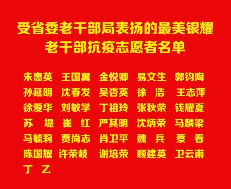 五、用教学文艺特长为抗疫助力的“最美银耀志愿者”。七十多岁的徐志平老师是嘉兴教育学院的退休教师。徐老师作为高校成人教育的教师,平日注重自身学习提高。爱书、读书、藏书,家里藏书近万册,在古文化和地方文化方面深有造诣。疫情期间,他积极参与嘉兴老年大学的复学复课有关工作,认真编写教学内容,做好网络授课的录播准备,老年大学的“诗词学习”“古文观止”课以视频形式播出,受到老年大学学员欢迎。此外,还有不少有一技之长的老干部老党员创作抗疫书画、诗词、剪纸作品等,为抗疫讴歌、鼓劲,全市老同志累计创作1800多件作品。 万众学先进,奉献在今朝!新冠肺炎疫情发生以来,我市广大离退休干部及志愿团队,坚决贯彻落实习近平总书记重要指示精神和党中央、省委、市委决策部署,助力打赢疫情防控阻击战,为取得抗疫阶段性胜利作出了应有贡献。 点击观看嘉兴电视台公共频道《桑榆情》栏目“最美抗疫志愿者”系列报道视频: 易文生