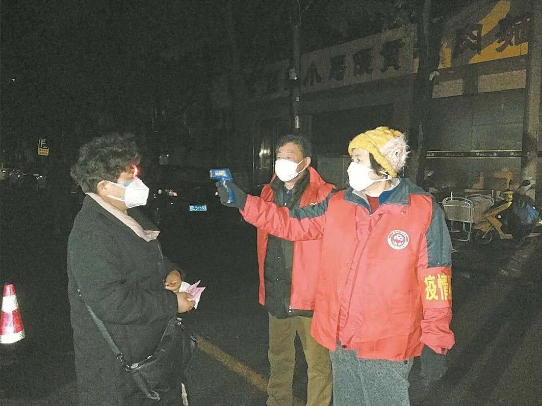花山区南湖社区党员“五老”俞素云,每天带领社区“五老”骨干在小区里巡逻值勤,挨家挨户排查宣传,让防控抗击疫情的号令、措施和科学防控知识家喻户晓。 “五老”志愿者俞素云 花山区平湖街道湖西社区党员“五老”志愿者穆守萍,是马钢一名退休职工。65岁的她,自告奋勇参加小区七村值班,风里来雨里去严守值班制度。她的丈夫是一名退休教师,在她的影响下也加入到“五老”志愿者行列,参加防控疫情的公益活动。2月14日情人节这天,这对老夫妻相约共同在卡点值班,冒着凛冽的寒风为过往行人测量体温、登记信息,从下午一直工作到深夜。穆守萍说,这是他们过得最快乐、最有意义的一个情人节。 “五老”志愿者穆守萍及爱人 雨山区