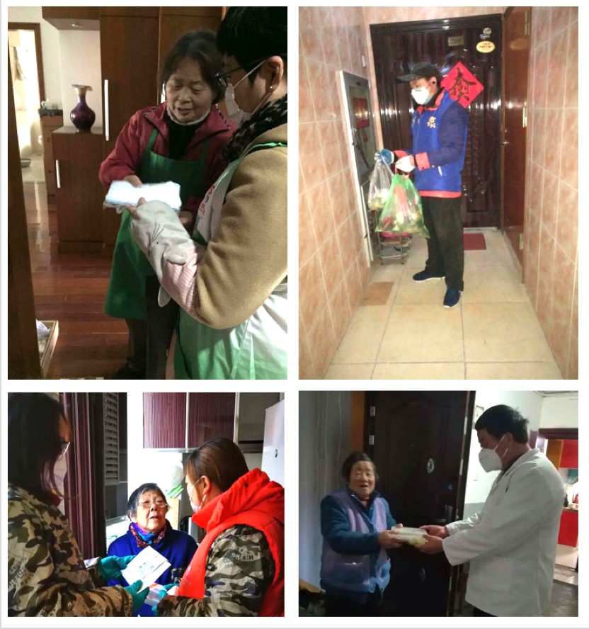 各街道镇充分利用社区资源和市场化手段,精准精细帮助老同志解决助医、助餐、助洁、助急、助浴、助行等养老需求。例如各街道、镇老干部工作者、居委干部、志愿者主动联系老干部,用自己的手机帮助老同志预约口罩,并到药房购买后“送货上门”。 石泉街道老干部工作部门与街道创新志愿服务小分队——“泉心守护为老小分队”联系,通过电话、微信等方式,为社区内19名结对独居离休干部送去关爱,并送上口罩、消毒水、酒精等防疫物资,对于不方便出门采买的老同志提供送药送菜上门、线上陪伴等暖心服务。 曹杨街道离休干部王明先住院期间多次病危,其大女儿远在海南,疫情期间外地回沪必须居家隔离14天,老干部工作者主动做工作,先通过视频与父见面,随着上海疫情好转,终于在其父病故前见上了最后一面。