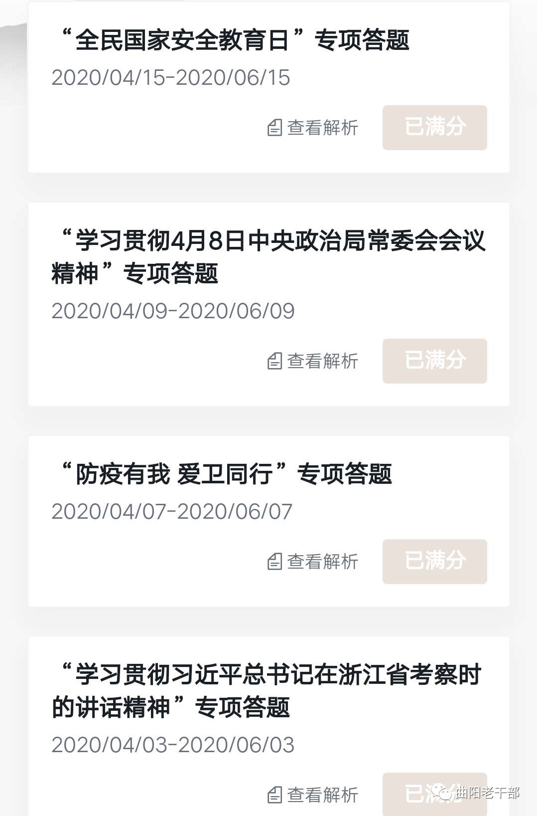 4月15日,“学习强国”平台推出“全民国家安全教育日”专项答题,县委老干部局组织干部职工集体进行了专项答题,进一步强化了维护国家安全的思想认识,增强了依法履行义务和职责的自觉性。 |