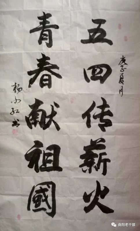 今年是习近平总书记发表纪念五四运动100周年重要讲话一周年。为进一步落实习近平总书记重要讲话,大力弘扬“爱国、进步、民主、科学”的五四精神,陶冶学生情操,曲阳县关工委、老干部局与北岳中学、永宁小学联合开展了“庆五四”教育活动。 此次活动正值我国新冠肺炎疫情取得重大战略成果之际,他们执担当之笔、蘸浓情之墨、展报国之志,抒发了新时代青年要继承和发扬五四精神,坚定理想信念,站稳人民立场,练就过硬本领,投身强国伟业,始终保持艰苦奋斗的前进姿态,同亿万人民一道,在实现中华民族伟大复兴中国梦的新长征路上奋勇搏击之情,呈现了新时代青年积极向上、乐观奋发的精神风貌,使同学生接受了一次生动的爱国主义教育。 五老作品 一、文学作品 五四情怀 常文建