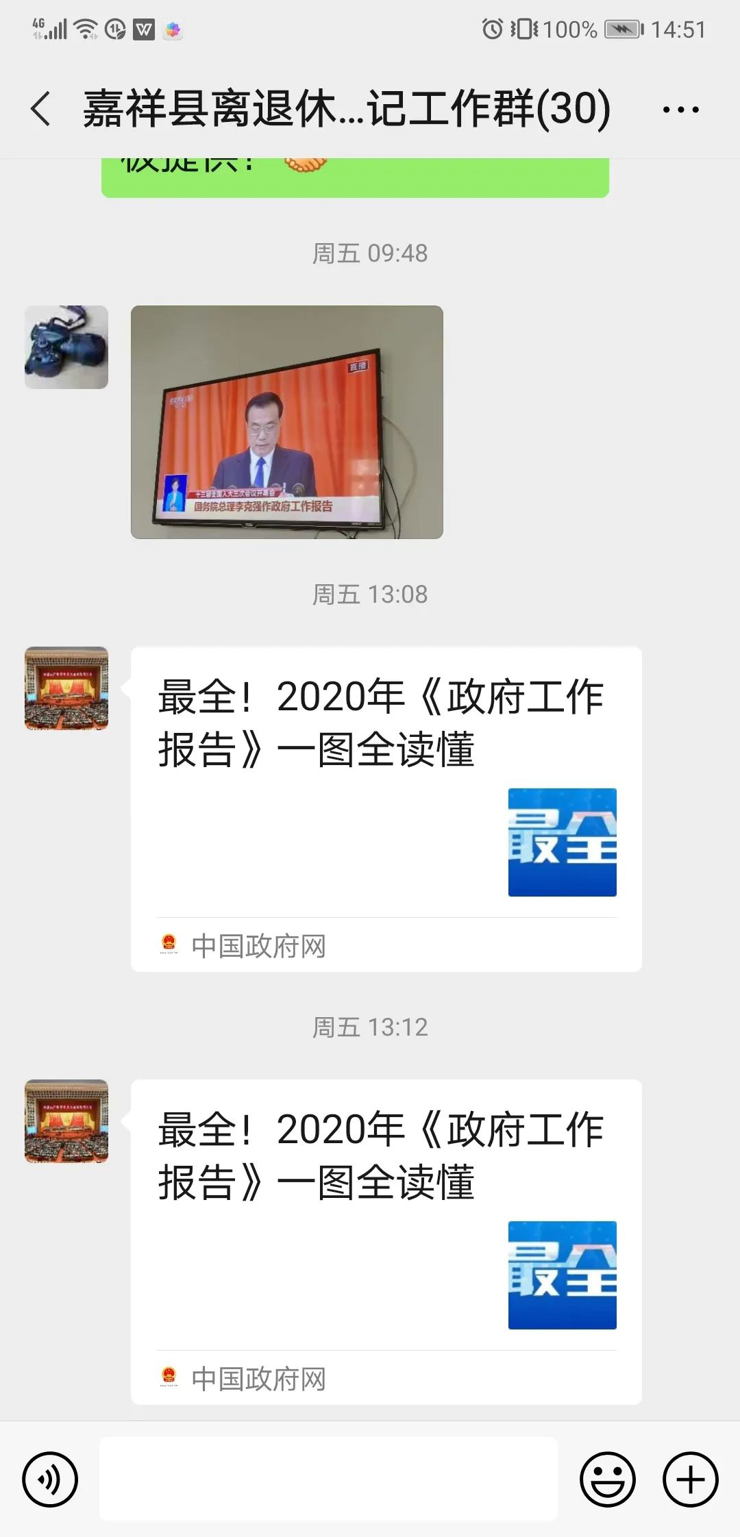 全国“两会”召开以来,嘉祥县把学习“两会”内容、弘扬“两会”精神作为当前一项重要政治任务,在离退休干部中持续掀起观“两会”盛况、话“两会”精神的热潮。 01组织收听收看 嘉祥县积极组织广大离退休干部通过电视、广播、手机客户端、“学习强国”学习平台、微信群等多种形式观“两会”、话“两会”。广大老同志积极响应,各离退休干部党支部书记带头居家学习,通过微信群交流、分享感悟与体会。 02营造学习贯彻氛围 以微信公众号、微信群、QQ群等为载体,持续转载、转发权威信息,大力营造认真学习贯彻全国“两会”精神的浓厚氛围,同时,也方便老同志及时学习、系统回顾。 03老同志热议“两会” 嘉祥县人大常委会原办公室主任、县人大机关老干部党支部第一支部书记丁振海: 今年我国面临着非比寻常的困难与挑战,今年的“两会”实属不平凡的“两会”。听了李克强总理的《2020年政府报告》,我感触颇深,报告语言平实,内容详实,老百姓听得懂,提出的2020年工作目标符合国情民情、贴近百姓,学习“两会”精神,感受到的是祖国的强大,我很欣慰,也备受鼓舞。 纸坊镇教办退休教师尹序兰: 我关注“两会”的同时,也非常关注全球疫情,深深感受到祖国的强大,在以习近平同志为核心的党中央的坚强领导下,全国人民能够万众一心、众志成城,迅速控制疫情发展,快速复工复产复学,充分证明了我国的制度优势。正是因为有中国共产党的领导,才让我们老百姓在面对疫情时信心满满,对今后的幸福生活充满期待。 嘉祥县教体局原工会主席、县教体局第三党支部书记闫中原: 观看“两会”实况,学习“两会”精神,我感触最深的就是中国共产党人民至上的执政理念。政府报告提出,今年要优先稳就业保民生,自始至终都体现着党对人民的关心关爱,中国共产党就是为人民谋幸福的,我对政府工作报告提出今年发展规划和重点工作部署充满期待,今后我将继续做好老教协的工作,做好党支部的工作,贡献自己的一份力量。 嘉祥县农业局原副局长、县农业局离退休干部党支部书记曹尚成: “两会”期间,一方面印象最深的就是“人民至上”四个字,对党中央实行的惠民举措也深有感触。另一方面为维护国家安全,我坚决拥护和支持《全国人民代表大会关于建立健全香港特别行政区维护国家安全的法律制度和执行机制的决定(草案)》。今后我将继续用实际行动践行初心、使命,带动年轻同志贡献力量、为组织分忧。 |