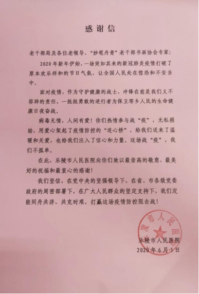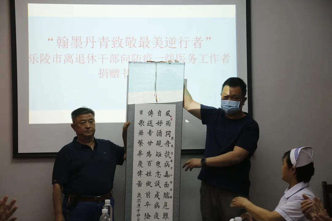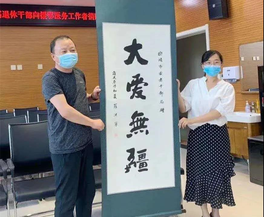 病毒无情,人间有爱。英雄凯旋,为表达对医务工作者的崇高敬意,凝聚老干部关心发展、服务发展正能量,乐陵市在老干部中开展向防疫一线医务工作者捐赠书画精品活动。 活动倡议发出后,乐陵市老干部积极响应,妙笔丹青老干部书画协会25位老干部凝心聚力、倾情创作书画作品32幅。 6月5日,捐赠仪式在市人民医院、市中医院分别开展。市爱国卫生运动推进中心副主任纪文广主持仪式。 市委老干部局副局长、市老年大学校长陈智勇发言,表示希望通过捐赠书画作品的形式表达对防疫一线医务工作者的敬意和感激之情。 捐赠现场 市红十字会常务副会长薛淑清, 市委老干部局副局长、市老年大学校长陈智勇,向乐陵市人民医院呼吸科副主任、援鄂英雄赵建厂捐赠书画精品。 向乐陵市人民医院、乐陵市中医院疫情防控一线医务工作者捐赠书画精品。 市人民医院党总支副书记、副院长赵军,市中医院院长臧建斌,分别介绍疫情期间医院防护工作,并代表医院对市委老干部局及广大老干部的关心关爱表示衷心感谢。 |