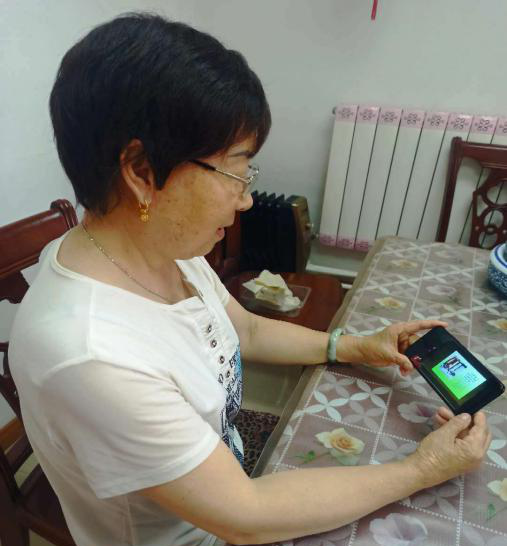 碧桂园社区老同志于启香收看 不到9:00,老干部党员代表就早早来到分会场。音乐响起,直播开始,他们随着主持人解说,一起回顾抗击疫情的感人瞬间。一张张照片、一个个短视频、一幅幅书画作品、一个个援鄂英雄镜头,深深感染着现场每一个人。有的凝眉仔细听,生怕漏掉一个镜头一句话;有的拿出手机拍摄直播画面,通过微信朋友圈实时分享。分会场外,老干部党员或三五成群聚集或独自宅家拿出手机,通过“烟台老干部”微信公众号,找到直播链接聚精会神地观看。他们沉醉其中,精神振奋,胸前的党徽熠熠生辉。 感触颇多说效果 直播结束,老干部党员们还回味着主题党日的内容。他们纷纷表示,参加今天的活动精神得到洗礼,党性得到提升。 周光建,是蓬莱阁街道老干部党支部书记。直播中烟台援鄂医护人员带有乡音的豪言壮语,让他既亲切又自豪。想到前不久支部的老干部党员们踊跃参加社区劝返点执勤的事情,心里产生强烈共鸣,情不自禁为这些抗疫英雄点赞喝彩。