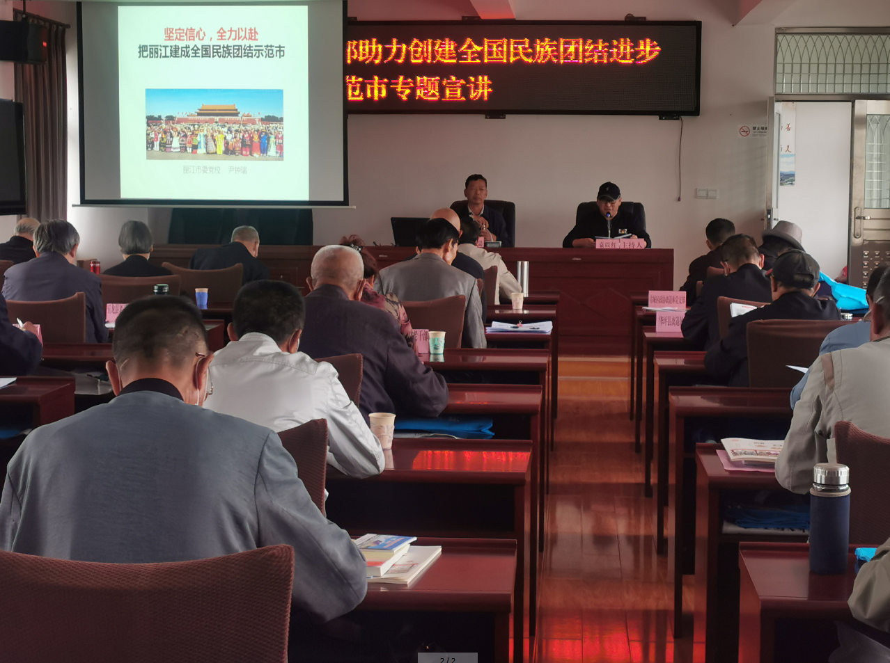 2020年8月18日下午,云南丽江市委老干部局邀请了丽江市委管理联系专家、丽江市政府特殊津贴享受者、丽江市委宣讲团成员尹钟瑞副教授为56名市直和各县(区)离退休干部党支部书记和学习骨干作了题为“坚定信心,全力以赴,把丽江建成全国民族团结进步示范市”的专题宣讲。 2015年1月,习近平总书记在考察云南时提出了“把云南建设成为我国民族团结进步示范区”的重要指示,2020年1月,习近平总书记时隔5年再次来到云南考察,要求云南全面深入持久开展民族团结进步创建,努力在建设我国民族团结进步示范区上不断取得新进展。丽江市有纳西族、彝族、傈僳族、白族、普米族、傣族、苗族、藏族、壮族、回族等10个世居少数民族,少数民族人口占全市常住人口的60.9%。创建全国民族团结进步示范市,是丽江市委、市政府贯彻落实习近平总书记考察云南重要讲话精神,结合全市实际提出的重要发展目标、作出的重大部署,是深化民族团结进步教育、筑牢各民族群众中华民族共同体意识的具体实践。 各美其美丽江美,心心相融一家亲。我们边疆离退休干部身上承载着党对少数民族地区的特殊关怀,体现着少数民族地区群众对党的感恩之情。正如聆听宣讲的老同志所言,广大老党员、老干部、老同志是党最可靠的政治力量之一,也是反分裂、反渗透、促进民族团结的重要力量。丽江市地理位置特殊,下辖2个民族自治县,三边被迪庆藏族自治州、怒江傈僳族自治州、大理白族自治州围绕,各民族像石榴籽一样紧紧拥抱在一起。对于丽江今天的发展成就,老同志们发自内心感到骄傲和自豪,这得益于市委、市政府的坚强领导,也得益于一直以来各民族的相互了解、相互尊重、相互包容、相互欣赏、相互学习、相互帮助。老同志们纷纷表示,今天的美好生活来之不易,要感恩祖国、感恩中国共产党、感恩伟大时代,老同志们作为丽江创建全国民族团结进步示范市的助力者,将筑牢中华民族共同体意识,一如既往发挥余热,贡献智慧。 |