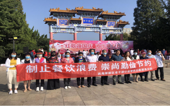 为积极响应习近平总书记号召,拒绝舌尖上的浪费,近日,青岛西海岸新区工委老干部局志愿者和老干部志愿者走进社区,在双珠公园举行“制止餐饮浪费、崇尚勤俭节约”义务宣传活动。