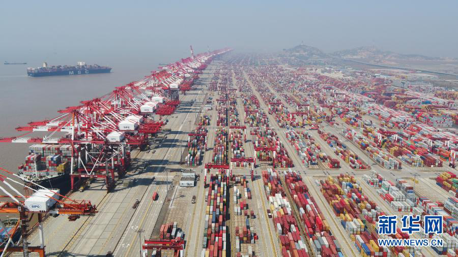 上海洋山港集装箱码头(3月18日摄,无人机照片)。新华社记者 丁汀 摄