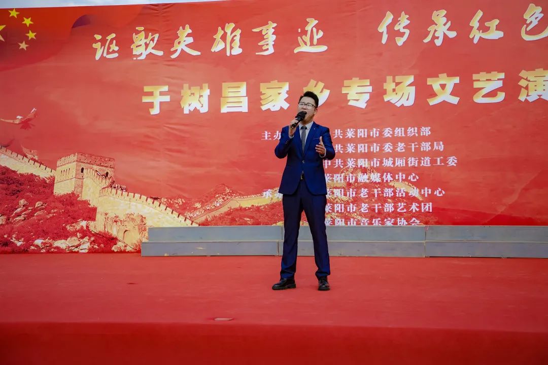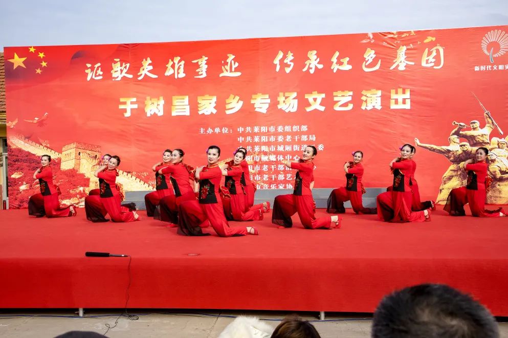 为纪念中国人民志愿军抗美援朝出国作战70周年,讴歌电影《英雄儿女》“王成”原型于树昌烈士的英雄事迹,莱阳市委组织部、市委老干部局、城厢街道党工委、市融媒体中心于11月26日上午,在城厢街道四真庄村成功举办“讴歌英雄事迹 传承红色基因”慰问于树昌家乡专场文艺演出。 本场演出围绕弘扬伟大的抗美援朝精神这一主题,涵盖了歌曲、舞蹈、配乐诗朗诵等表演形式,为英雄家乡呈现了抗美援朝战场上一幕幕波澜壮阔而又雄浑慷慨的英雄史诗。 演出在大家耳熟能详的歌曲《英雄赞歌》中拉开帷幕,熟悉的旋律,瞬间把观众带回到70年前的峥嵘岁月,引发了观众的强烈共鸣。为了表达对于树昌烈士的敬仰与怀念,由莱阳市委老干部局组织创作的歌曲《英雄是你》、配乐诗朗诵《为了胜利向我开炮》两个节目,再现了于树昌烈士舍生忘死、气吞山河的英雄壮举,将整场演出推向高潮。 此次演出,莱阳市老干部艺术团共100余人参演,英雄家乡群众和我市老干部党支部书记300余人到场观看。通过莱阳市融媒体和烟台老干部、中国老干部微信公众号等线上直播平台观看人数达数万人。于树昌烈士家乡村民告诉记者:这场演出让他们感受到作为英雄家乡人民的自豪,也激励着他们,用实际行动传承英雄精神,告慰英雄英灵。 点击看视频: https://app.iqilu.com/share/bC0yNDEtMjk2NDE.html?version=3.0 现场照片: