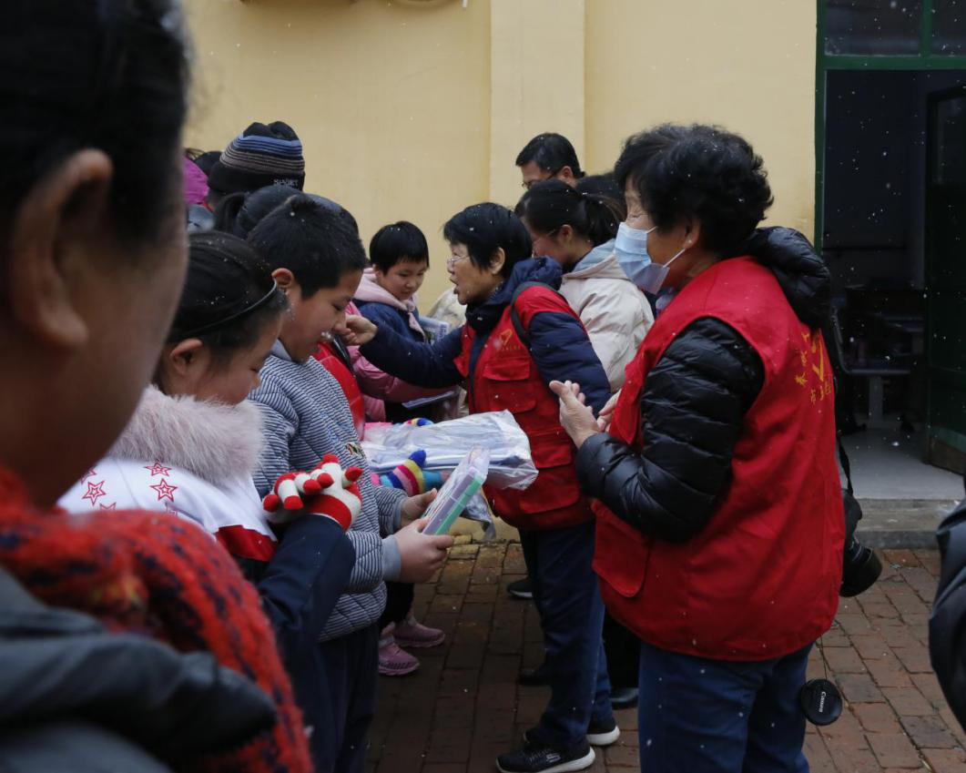 志愿者蔡华贞说:“我们到来时,孩子们正在扫雪呢,收到礼物以后都来跟我道谢,真的很真诚又有礼貌。问他们收到礼物开心吗?他们一脸开心。我觉得来这里的意义就达到了。”